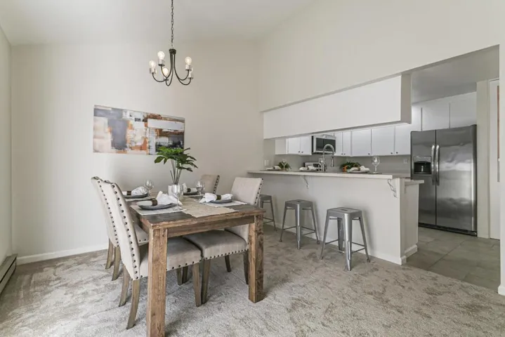 DRAMATIC HIGH VAULTED CEILING IN LIVING/DINING ROOMS FOR LIGHT, OPEN, AIRY AMBIENCE. NEW PAINT, RECESSED LIGHTING IN THE KITCHEN, NEW UPGRADED CARPETING, NEW QUARTZ COUNTERTOPS IN THE KITCHEN & BREAKFAST BAR COUNTER, NEW QUARTZ PRIMARY BATH COUNTER WITH NEW DOUBLE SINKS AND PLUMBING, NEW QUARTZ COUNTERTOP IN THE HALL BATH WITH NEW SINK AND PLUMBING, NEW GE OVEN & RANGE, NEW GE DISHWASHER AND NEW GE MICROWAVE/FAN OVER THE OVEN/RANGE, NEW UPGRADED BLINDS ON ALL OF THE WINDOWS AND THE SLIDER, INSIDE CLOSET FOR FULL SIZED CLOTHES WASHER AND DRYER, COMMUNITY POOL/SPA AND CLUBHOUSE. CONVENIENT LOCATION TO SHOPPING, RESTAURANTS, MINUTES TO DOWNTOWN WILLOW GLEN AND GUADALUPE HIWAY 87. THIS CENTRALLY LOCATED CONDO IS A MUST SEE. THIS CONDO HAS NOT BEEN OCCUPIED SINCE ALL OF THE ABOVE REFRESHING, PAINT, APPLIANCES, COUNTERS, ETC.