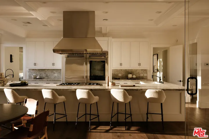 Welcome to 9694 Oak Pass Road, riddled with celebrity history, step inside this extraordinary private compound in the exclusive gated enclave of Oak Pass in Beverly Hills. Set on 1.7 acres with dual entrances, this estate offers both privacy and unmatched proximity to Rodeo Drive and the Beverly Hills Hotel. The property showcases a grand main residence, a two-story guest two bedroom guest house with kitchen, a striking two-level gym structure with a full-size boxing ring and aircraft hangar doors that flow seamlessly to a full basketball/sports court. Outdoor living is elevated with a resort-style grotto pool, cascading waterfalls, a waterslide, wood-burning pizza oven, putting greens, citrus orchards, and expansive entertaining areas. The main residence features soaring ceilings, white oak floors, and refined living and dining spaces opening to an oversized deck with sweeping lush green canyon views. The gourmet kitchen features a breakfast area and eat-in area with temp. controlled wine cellar and access to deck. The expansive primary suite on the main level features a retractable tv, two en-suites with full luxury amenities and two walk-in closets with dressing area. A 136″ home theater with wet bar and fireplace opens to an outdoor screening terrace. Additional suites and a spacious lower level family room with bar occupy the lower level, creating a seamless indoor-outdoor floor plan. Complete with a salon, staff facilities, and meticulously landscaped grounds, 9694 Oak Pass Road embodies complete privacy, timeless elegance, and a rare opportunity to own one of Beverly Hills’ most coveted compounds.