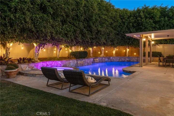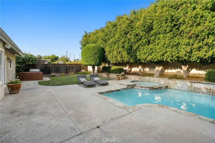 Indulge in the epitome of a single level luxury living in this exquisitely RENOVATED HOME. Boasting 2665 Sq. Ft of meticulously designed living space this 4 bedroom 2 bathroom residence offers unparalleled comfort and sophistication. The rare advantage of a SINGLE LEVEL layout with NO STEPS ensures effortless living. Step inside and be captivated by the expansive OPEN FLOOR PLAN, highlighted by soaring CATHEDRAL CEILINGS. The heart of the home is a spectacular kitchen, a chefs dream come true. Featuring a large seated island, 6 burner gas cooktop + griddle, double ovens, built in GE MONOGRAM REFRIGERTOR & FREEZER, microwave drawer, separate prep sink, filtered drinking water GE MONOGRAM ALPPLIANCES. Bonus, there is a convenient coffee bar with a beverage refrigerator and spacious walk in pantry, two separate trash bins, cabinet organizers. The formal dining area features a fireplace and is currently being utilized as a billiard room. The open living area is inviting and also enjoys a fireplace, cathedral ceilings and another area for family dining. Another special feature is the spacious primary suite featuring sliding doors leading to the outside covered patio and pool area, this suite also enjoys a wonderful bath area with separate soaking tub, walk-in shower and two separate vanities. The advantage of having 4 bedrooms allows for one room to utilized as a home office. Step outside to the very private backyard featuring a 10,000 sq ft level lot with mature trees. Enjoy casual living or entertaining is this very private backyard also featuring a built in LYNX BBQ and swimming pool and spa with beautiful colored lights. The SWIMMING POOL & SPA have just been replastered. Enjoy Al Fresco dining under the covered patio or sun yourself on the open patio. Both sides of the home are spacious and one side is gated for a potential dog run. Beautiful NEW VINYL FENCING surrounds this corner lot home. Enjoy the convenience of an attached 3 car garage with built in cabinets and direct access to the home. This neighborhood is beautiful and has NO HOA! Located near an array of restaurants, this exceptional property is the perfect blend of luxury, convenience and effortless elegance. This is more than a home, it’s a lifestyle. Seldom does a single level home without any steps + a 3 CAR GARAGE come onto the market. Don’t miss this opportunity.
