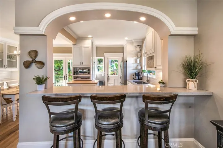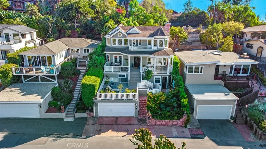 Move right in to this gorgeous Victorian 5 BR 3 BA home with panoramic views from the city lights to the Pacific Ocean located on a cul de sac above Laguna Village in Summit Ridge. This custom home has been recently remodeled in Modern Farmhouse style including 5 separate decks, vaulted ceilings, lots of natural light, spacious rooms, large kitchen open to the great room and neutral fresh paint colors throughout. The lower level includes a 2 car garage with storage. The main level greets you with a large viewing deck for outdoor dining/lounging/entertaining, container gardening and peaceful ocean breezes and views. The large gourmet kitchen features quartz counters, stainless steel appliances and sink, lots of storage and counter space. It is open to the dining room including built in storage, open to the large great room with a dry bar, stone surround fireplace and more views. There are two bedrooms and one bath on this main level with views to the ocean in the front, and the beautiful garden in the back of the home. Upstairs you will find the large master suite including large picture windows to capture the ocean view, fireplace, retreat/seating area, and outdoor deck to enjoy your morning coffee or evening glass of wine. The master bath features dual vanity sink, large soaking tub, shower and walk in closet. The 4th and 5th bedrooms and 3rd bath complete the upper rooms again, with ocean and garden views. Laundry utility closet conveniently located on this level. The backyard is beautifully landscaped with multiple outdoor cozy dining areas. Prime location only blocks to the best shopping, restaurants, galleries, and world-renowned beaches that Laguna Beach has to offer!