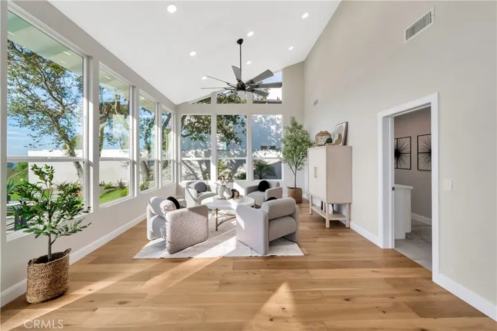 Beautifully Remodeled Laguna Niguel View Home. This stunning home has been completely reimagined with modern finishes and thoughtful design. Featuring three spacious bedrooms on the upper level with the option to create a secondary primary suite on the main floor. This residence offers incredible flexibility for today’s lifestyle. The chef’s kitchen is a true centerpiece, showcasing a Thermador Professional gas range with pot filler, 48” built-in Viking refrigerator, and a beverage/wine fridge. Expansive floor-to-ceiling windows flood the main living areas with natural light while framing, sweeping panoramic views. The primary suite is a serene retreat with vaulted ceilings, a luxurious walk-in closet complete with custom organizers and center island. The upstairs laundry room adds ease to daily living. Outdoors, the spacious backyard is perfect for entertaining or simply enjoying the breathtaking views.