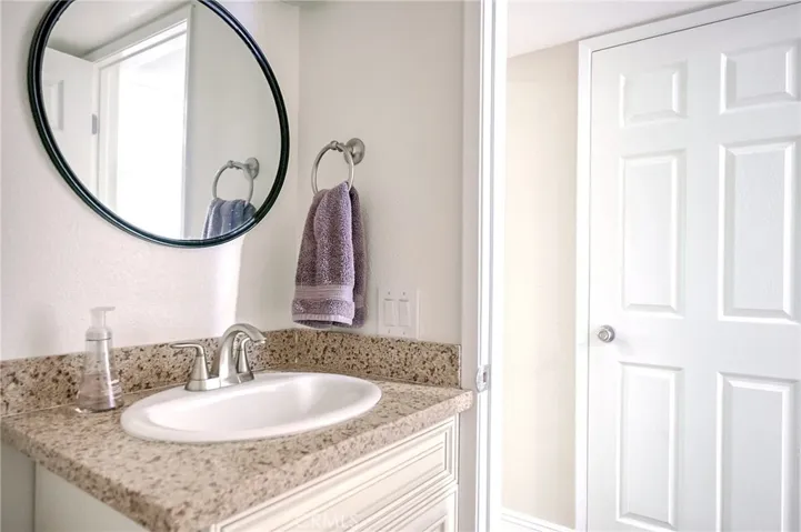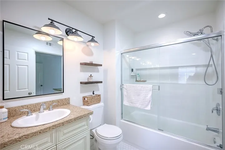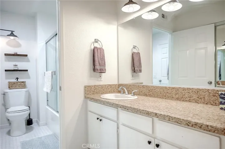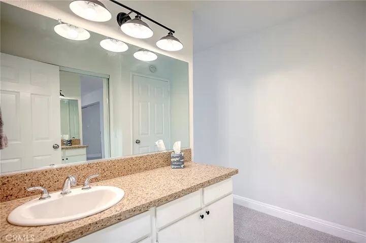Upstairs, you’ll find two generously sized bedrooms—each offering excellent storage, updated carpet, and clean finishes. One bedroom includes attic access and a third large closet with a separate vanity area. The full bathroom has been refreshed with modern tile flooring and a clean, timeless design.