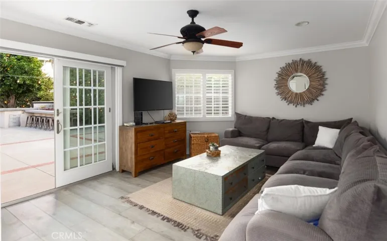 Additional highlights include central heating and air conditioning, recessed lighting, and luxury vinyl plank flooring throughout much of the home. A spacious permitted family/TV room addition (2005) enhances the living space, while the expansive backyard is designed for quintessential Southern California entertaining. Enjoy the oversized spa (“spool”), built-in BBQ with bar seating, fire pit, and plenty of room for outdoor dining, lounging, and play—complete with fruit trees and lawn space.