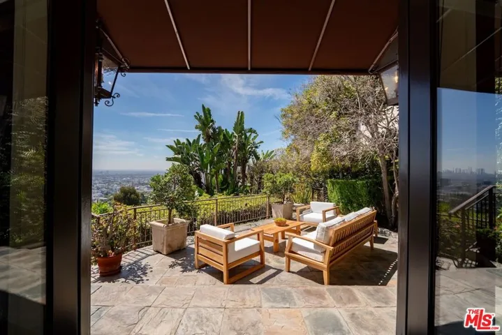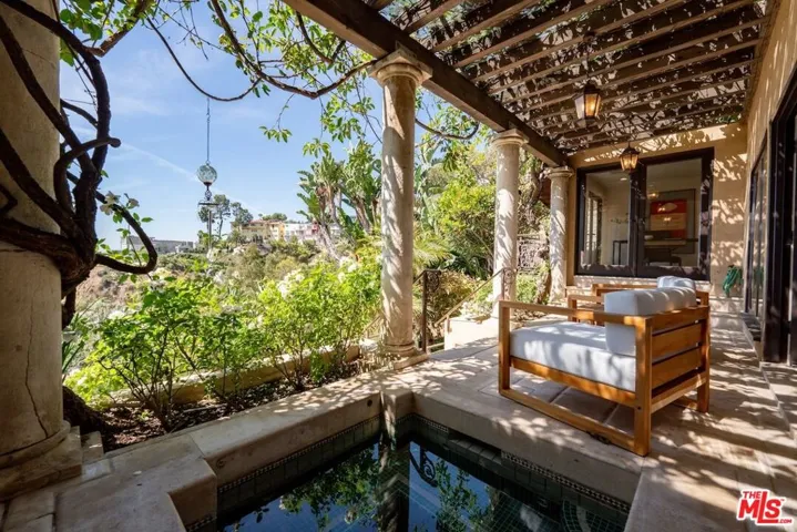 Welcome to an enchanting retreat in the heart of the Hollywood Hills, where timeless character meets modern allure. Tucked away at the end of a tree-lined cul-de-sac in coveted Outpost Estates, this gated Tuscan-inspired villa offers the perfect balance of privacy, romance, and sweeping city views.Set behind walls and surrounded by sunlit gardens, the estate welcomes you through a grand courtyard into interiors rich with artisan craftsmanship. Dramatic coffered ceilings, hand-forged ironwork, and dark wood floors lend an air of old-world sophistication, while expansive windows and French doors bathe each room in natural light.The chef’s kitchen, designed with a center island, custom cabinetry, and stenciled pavers, is a culinary haven that flows seamlessly into the home’s warm gathering spaces. The primary suite is a sanctuary in itself, featuring a cozy fireplace, private patio, and spa-like tiled hot tub positioned perfectly for sunset views.Multiple verandas embrace the outdoors, providing inviting spaces to host, relax, or simply gaze out at the glittering city lights below. With three spacious bedrooms, lush grounds, and ample room for a pool, this residence offers both a luxurious lifestyle today and endless opportunity to reimagine tomorrow.Just moments from world-class dining, retail, and nightlife, this extraordinary property captures the essence of creative inspiration and refined living in one of Los Angeles’ most iconic neighborhoods.