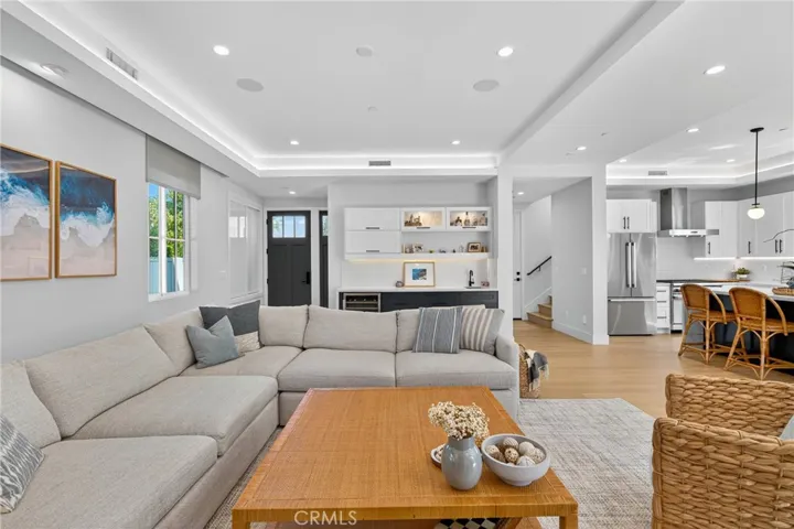 Welcome home to this stunning, detached townhome built in 2022! Upon entering, you’ll be greeted with soaring ceilings, tons of natural light, and beautiful hardwood floors. An open floor plan features a spacious living room with fireplace, wet bar with wine fridge, dining area big enough for entertaining, powder room for guests, and a Chef’s kitchen with an eye-catching island. Some of the highlights of the kitchen are a Wolf 6-burner gas range and hood, Bosch fridge, and convenient pantry. A private south-facing backyard space is perfect for dining al fresco or hosting a barbecue. Upstairs, you’ll find an additional den space great for a reading nook or play space, two balconies, washer and dryer, and all 4 bedrooms. The primary suite features vaulted ceilings, a fireplace, and balcony access. The primary bath is a true spa-like retreat with dual vanities, skylight, large shower, and soaking tub. There is an additional bedroom with en suite bath on this level, as well as a guest bath for the other two bedrooms to share. But that’s not all! This home has all the bells and whistles – OWNED solar providing incredible electricity savings, a 5-speaker sound system with music receiver, window treatments with remote control and programming capability, LED lighting, Doorbird front door video system, 5 camera security system, central vac, tankless water heater, automated irrigation system, an epoxy-floored 2 car garage with remotely controlled garage door convenient for deliveries when not at home, pre-wiring for an EV charger, and thoughtful storage spaces and excellent floorplan functionality throughout. A quiet street away from busy roads with a stellar location just one block from Anderson Park and fantastic Lincoln Elementary, 4 minutes from the 405 freeway, and only 2.5 miles from downtown Manhattan Beach. Top rated schools and the irresistible South Bay lifestyle await – what are you waiting for? Come and see this better-than-new-construction home and find the special one for which you’ve been searching for!