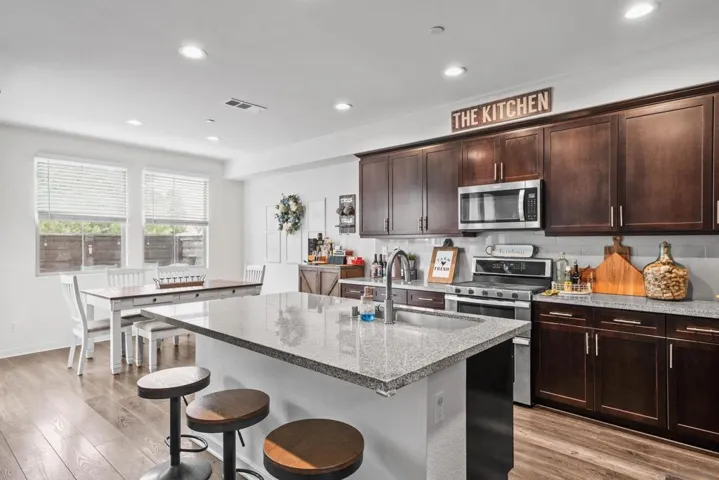 Welcome to 2075 Tango Loop #1, a beautifully upgraded home in the heart of Millenia. Built in 2019, it blends modern design with everyday comfort and function. The open-concept great room flows naturally into a contemporary kitchen featuring shaker cabinetry, granite countertops, a large island, and stainless steel appliances. High ceilings, upgraded flooring, and modern fixtures, add a polished touch throughout. A convenient powder bath on the main level makes hosting easy. Upstairs, the spacious primary suite includes a walk-in closet and spa-like bath with dual vanities and a glass-enclosed shower. Secondary bedrooms and baths carry the same clean, timeless finishes, while the landing at the top of the stairs offers a convenient flex space. A dedicated laundry room and direct-access two-car garage add everyday convenience. Step outside to a private patio, perfect for morning coffee or evening wine. Community amenities include a sparkling pool and hot tub, and access to scenic neighborhood parks, extending your living space outdoors. Set within Chula Vista’s sought-after Millenia community, this home is close to top-rated schools, parks, shopping, and dining-everything you need just outside your door.