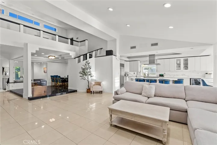 Highlights include 6 bedrooms, 6 baths, a home office with private entrance, Italian porcelain floors, and a projection-ready home theater/family room with soaring 14-ft vaulted ceilings and walls of windows. An art-gallery-style living room with baby grand piano, formal dining area, and an expansive family room make this home perfect for entertaining. Step outside to a Caribbean-blue Baja ledge pool and spa, landscaped flowering grounds, and dramatic smart lighting. Additional features include rare 360 ft of utility storage, plus inside and outside kitchens for effortless entertaining.