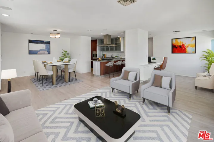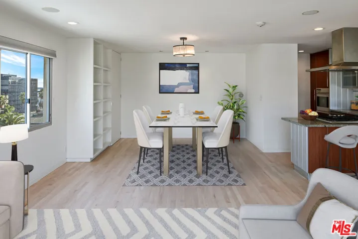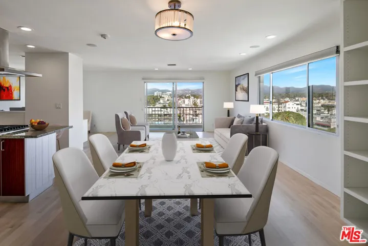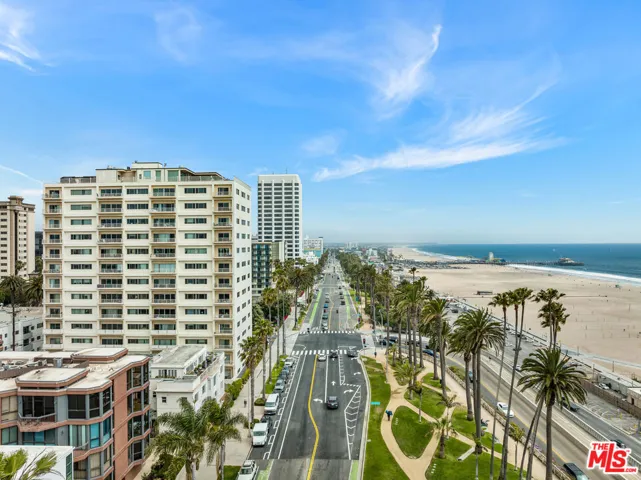 Experience the best of Santa Monica living along the highly coveted Ocean Avenue. This open concept corner unit boasts some of the best views around from magical coastline and sunsets to snow capped mountains in the winter from nearly every angle. Originally a 2 bedroom unit that has now been opened up to a large 1 bedroom + office/den it could easily be converted back into 2 if one needs. An updated kitchen with breakfast bar opens to the dining area with custom built-ins. A spacious living room gives way to ocean views, a private balcony, and a custom office nook. The primary suite offers another incredible view and plenty of closet space. All of this in close proximity to the best of Santa Monica – including world class dining, shopping, entertainment, farmers markets, fitness studios, parks, and the beach!