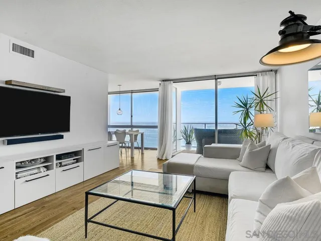 True oceanfront living—12th floor views of endless Pacific blue from every room. Unit 1205 at the Coronado Shores maintains its original floor plan with select updates, making it comfortable today and the ideal blank canvas for a future remodel. Light-filled interiors, floor-to-ceiling windows, and a private balcony frame panoramic surf, sunsets, and dolphins at play. Enjoy resort-style amenities: four oceanfront pools, tennis, pickleball, fitness center, and the Beach Club—all just steps to the sand. Whether as a full-time residence, vacation escape, or smart investment, this oceanfront gem invites its next chapter at one of Southern California’s most sought-after addresses.