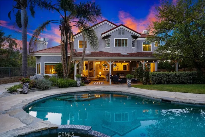 Nestled in the highly sought-after Buttercreek Estates community is a stunning residence that blends luxury, privacy, and functionality. This expansive 5-bedroom, 4.5-bathroom home spans approximately 3,603 square feet and sits on a generous 10,460 sq ft lot at the end of a quiet cul-de-sac, bordered by open space on three sides with only one direct neighbor—offering a rare sense of seclusion and serenity. From the moment you enter through the grand double doors, you’re welcomed into a dramatic foyer featuring soaring ceilings, a graceful spiral staircase, and elegant tile flooring. The main level boasts a formal living room with a cozy fireplace, a private ensuite downstairs bedroom, a formal dining room with French doors, and an expansive family room with custom built-ins, recessed lighting, and a second fireplace. The chef’s kitchen is a true centerpiece, featuring granite countertops, a center island with breakfast bar, stainless steel appliances, custom cabinetry, and picturesque views of the backyard oasis. Upstairs, the luxurious primary suite offers a private retreat with a separate sitting area and a spa-inspired bathroom complete with dual vanities, soaking tub, custom cabinetry, and a massive shower equipped with seven shower heads. Three additional bedrooms upstairs provide ample space for family or guests. Outside, the resort-style backyard is an entertainer’s dream, featuring a 600 sq ft covered patio with skylights, ceiling fan, built-in BBQ, outdoor entertainment system, and a sparkling Pebble Tech pool and spa, all surrounded by lush landscaping and tranquil hillside views. Additional highlights include a 3-car garage with built-in storage and custom quiet-close doors, dual-pane windows throughout, and thoughtful upgrades that add style and comfort. Ideally located in a peaceful, established neighborhood with access to top-rated schools, parks, and local amenities, this home is the perfect blend of upscale living and everyday convenience.