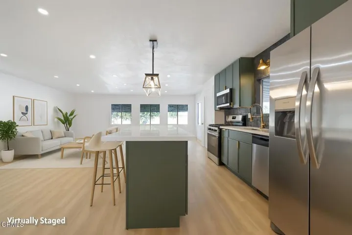 Welcome to 21001 Plummer St #114 – where modern elegance meets serene mountain sunsets in Chatsworth’s desirable Sunburst Mobile Home Estates, a welcoming 55+ community. This beautifully reimagined double-wide home offers 1,344 sq ft of open-concept living, designed for comfort, style, and ease.The heart of the home is the chef’s kitchen, showcasing quartz countertops, a striking Indonesian stone tile backsplash, all-new cabinetry with self-closing hardware, and a generous 9-foot quartz island with abundant storage–perfect for cooking, dining, and entertaining. Modern appliances and elegant pendant lighting complete the space.New French doors lead from the dining room to the front porch, the perfect spot to relax and watch the sun set over the mountains. With low-maintenance landscaping, a spacious outdoor patio for barbecues and entertaining, and a large storage shed, this home offers both beauty and functionality.Both bathrooms have been transformed into spa-like retreats with large porcelain tile showers, new vanities, tile flooring, toilets, and fixtures. The primary bedroom ensuite also includes a walk-in closet, adding convenience and comfort to your private retreat. Comfort is assured with three Wi-Fi-enabled mini-split systems, new copper plumbing and ABS drain line, and updated electrical breakers and outlets. Additional highlights include luxury vinyl plank flooring throughout, fresh paint inside and out, all-new drywall, and a new roof coating.This move-in-ready home blends modern upgrades, peaceful living, and gentle mountain sunset views–ready for you to make it your own.