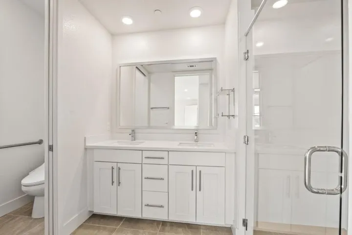 Experience exceptional 55+ living where luxury, comfort, and serenity come together. This beautifully designed home offers scenic views of Leo J. Ryan Park and the tranquil center lagoon connecting to surrounding waterways. The open-concept layout features a modern kitchen with premium appliances, generous cabinetry and expansive counter space, and a large island with a breakfast bar. The bright and spacious living room boasts soaring ceilings, floor to ceiling windows capturing sweeping views, upgraded flooring, ceiling fans and multiple windows. A French door opens to a large patio, The primary suite includes motorized shades, a walk-in closet and a spa-inspired ensuite bathroom with dual vanities with a large walk-in shower. Two additional bedrooms offer plush carpeting and ample closet space. A well-appointed hall bathroom and a laundry area with a full-size washer/dryer add convenience. A private detached two-car garage includes a secure semi-private elevator to your front door. Additional highlights include, recessed lighting, a Nest thermostat, tankless water heater, and central AC/heating. Bathrooms have timed exhaust fans, HOA dues of $822/month cover sewer, trash, and more.