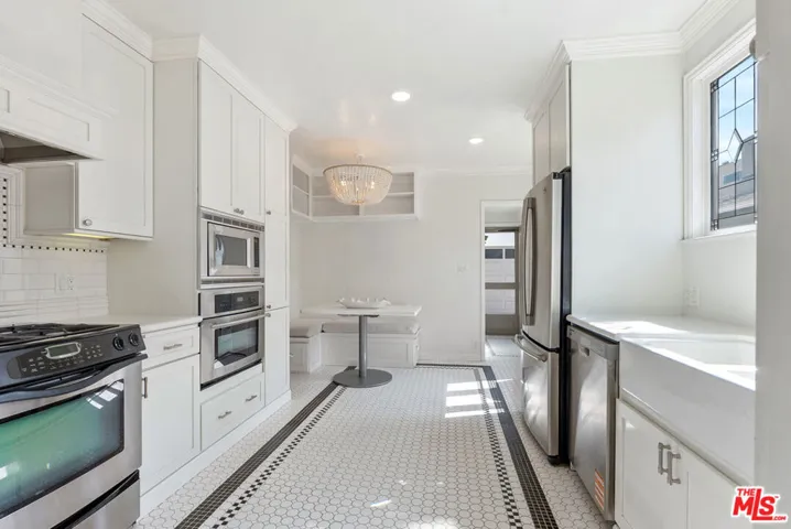 Tucked away on a serene, tree-lined street in prime Brentwood, this exquisitely reimagined Spanish residence blends the romance of old-world architecture with the effortless elegance of modern living. Recently renovated with meticulous attention to detail, every corner of this home tells a storyone of sophistication, warmth, and enduring charm. A private, sun-kissed courtyard welcomes you into a world of curated beauty, where arched doorways, hand-hewn wood-beamed ceilings, and a grand fireplace anchor the formal living room in classic character. A sweeping picture window frames verdant views of the front garden, bathing the space in natural light and offering a seamless connection to the outdoors.Designed for both intimate gatherings and elevated entertaining, the formal dining room flows gracefully into a chef’s kitchen outfitted with top-tier stainless steel appliances, custom cabinetry, and an inviting breakfast nook illuminated by morning sun.The first floor is completed by a cozy guest suite with en-suite powder room, a fully appointed bathroom, a versatile den or reading room perfect for quiet reflection, and a laundry room designed with both form and function in mind.Upstairs, the primary suite serves as a tranquil retreat, featuring a private balcony terrace, a generous custom closet, and an airy ambiance that evokes a boutique hotel sensibility. A third bedroom and beautifully styled full bath offer comfort and privacy for family or guests. The home includes new wood floors upstairs, and refinished throughout. Outdoors, discover a hidden oasis ideal for alfresco living: dine under the dappled light of a pergola-covered terrace, unwind on the open-air patio, or entertain effortlessly amid the lushly landscaped courtyard. A long driveway and detached garage with alley access provide ample parking and convenience. Located moments from the prestigious Brentwood Country Club, the Brentwood Farmer’s Market, Brentwood Country Mart, and incredible shops, dining and entertainment, this home offers the rare opportunity to experience the Westside lifestyle at its finest.