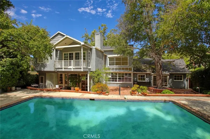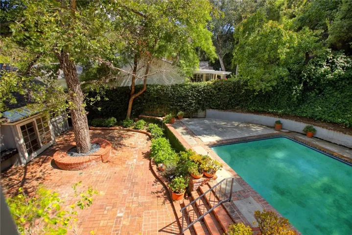 Designed for entertaining, an integrated sound system flows throughout the home. The backyard includes a spacious brick patio, spa, and pool surrounded by lush greenery for ultimate privacy. A rare opportunity in a premier Sherman Oaks neighborhood—ready to be reimagined into your forever home.