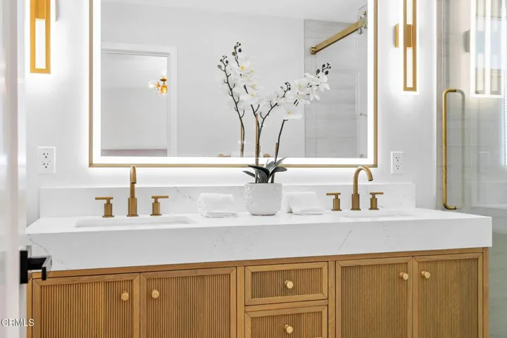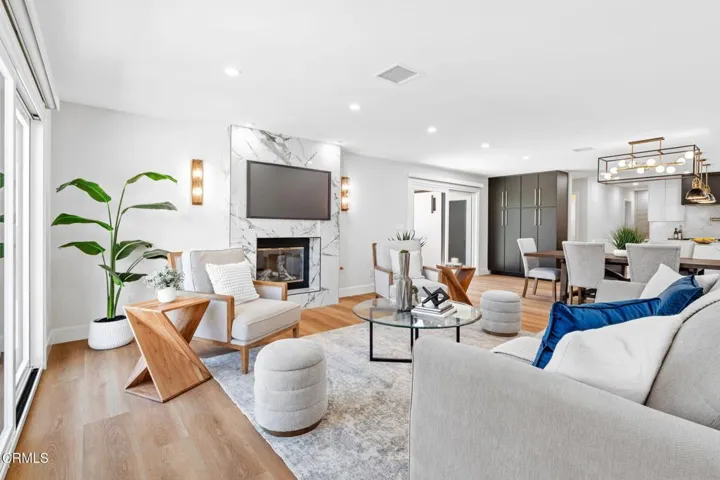 Discover unparalleled living in this meticulously remodeled 4-bedroom, 3-bath home, where every detail has been thoughtfully updated. The exterior showcases a durable metal roof and new stucco, ensuring both curb appeal and longevity. Step inside to an all-new interior, from the modern kitchen with its high-end appliance, waterfall island to the majestic fireplace, Custom cabinetry stylishly appointed bathrooms, including a water room and a convenient, dedicated laundry room.Think economics with new windows, doors, electric panel, HVAC, a/c, automatic shades and car charger.The beauty of this home is a rare art piece. Every detail has a significant personal detailed touch.The outdoor spaces are just as impressive. A beautiful new gazebo sits within the tiered landscape with sprinklers and lighting creating an ideal spot for relaxation, and outside kitchen for the ultimate in alfresco dining & entertaining. Full size Olive, avocado, persimmon trees, beautifully finished concrete stairs and iron fencings round the brick tiered yard. The elevated location provides spectacular, sweeping views of the city lights, the Pacific Ocean, and the majestic mountains. The oversized lot will allow for many activities and friendly gatherings. Parking driveway was expanding for four cars. Coming home every day will be a joy. As a bonus, an optional Ondulando Club membership is available, offering a community hub with a pool, pickleball. Living the Hillside life with space to grow and unparalleled views in a like new home might be just what you need…Come by for the list of upgrades.