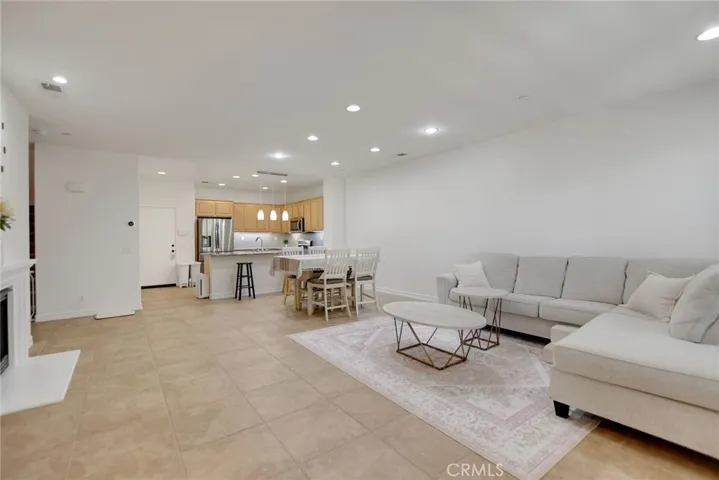 Elegant interiors with crown molding, high ceilings, recessed lighting, and open floor plan