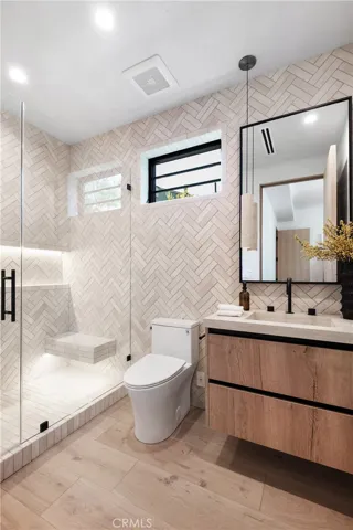 Experience elevated living in this striking new-construction home with a detached ADU, set on an expansive gated lot in prime Studio City. Thoughtfully designed for modern living, this open-concept floor plan is complimented by high ceilings and wide plank engineered oak floors that run throughout the home. The designer chef’s kitchen is a culinary showpiece, equipped with top-of-the-line appliances, stunning Taj Mahal quartzite countertops and a massive waterfall island. The adjacent living room and formal dining area are anchored by an oversized sliding glass door that disappears into the wall for seamless indoor-outdoor living, perfect for entertaining. The main level also features a state-of-the-art media room, ensuite bedroom and chic powder bathroom. Upstairs, a flexible loft space, laundry room and four generously sized ensuite bedrooms await, including a luxe primary suite with a private balcony, custom walk-in closet and sumptuous bathroom, complete with a soaking tub, large rainfall shower, smart toilet, double vanity and makeup vanity. Step outside to a serene backyard retreat surrounded by privacy hedges, where you’ll find a sparkling saltwater pool/spa, outdoor kitchen and low maintenance artificial turf yard. The detached ADU offers endless possibilities with a spacious living/dining area, full kitchen, 1 bed and 1 bath – great for guests, in-laws, a home office or wellness space. Additional highlights include a Control4 smart home system with integrated speakers and security cameras, a central vacuum system, paid-off solar panels and a two-car garage that’s been prewired for an EV charger. This property is ideally located within the highly acclaimed Dixie Canyon School District and nearby Ventura Boulevard’s vibrant shopping and dining scene, the Shops at Sportsman Lodge and so much more.