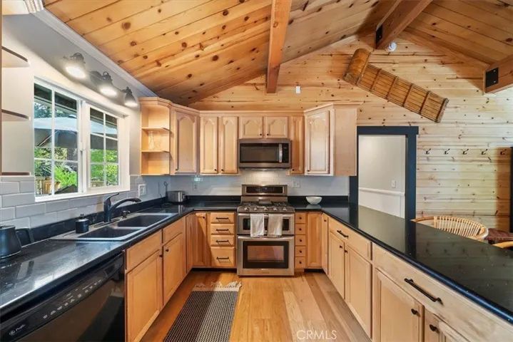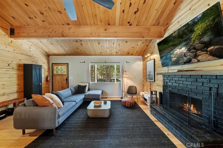 Price improved on this winter ready, professional interior design with a modern European/Cabin chic look. This designer upgraded retreat offers a rare opportunity to own a Big Bear gem w/ massive yard, high-end furniture, and serene surroundings! Imagine fireside mornings, spa nights, and snowy evenings w/ a shuttle nearby to the village and ski resort. The upgrades were done with meticulous care. Features include solid hardwood flooring, and high end, barely used furniture. Home is move-in ready or all set for vacation renting this winter. The light and bright interior is so spacious with cathedral ceilings, fresh paint inside and out. While the inside is amazing, the unique setting is awesome. A huge backyard backs to Camp Tanda-a rare find in Big Bear Lake with an outdoor spa, lovely decking and even views of a Great Blue Heron’s nest. Because of the layout of this home, it feels larger than the square footage. The level sunny setting and one car garage make this the perfect retreat or full time home. It is definitely one of the most unique and desirable pride of ownership homes on the market! Don’t miss this opportunity.