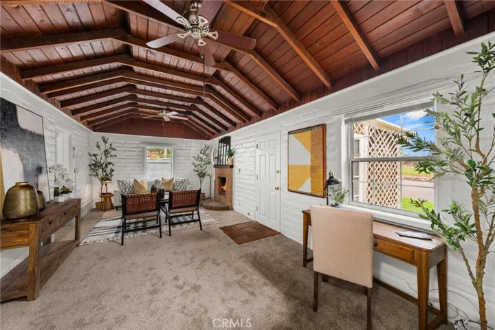 Price improvement! Single story home with a detached garage on a .25 acre flat lot with alley access! Located less than .5 miles from Uptown Yucaipa classics like White Rabbit Coffee and Brewcaipa, this home is an excellent example of classic Yucaipa charm in a great location. Enter through the front screened porch into the living room, where you’ll find plenty of natural light and vaulted ceilings with exposed beams. A sizable bedroom has direct access to the full bathroom. The large kitchen features eat in dining. A smaller bedroom off to the side would also make a great home office. Heading out back, you’ll find access to a sizable cellar – perfect for long term storage. There is a detached one car garage as well. The sizable, flat lot has great alley access. Great potential to build a large garage or shop, or even an ADU with it’s own access! The home has new carpets throughout and fresh interior paint.