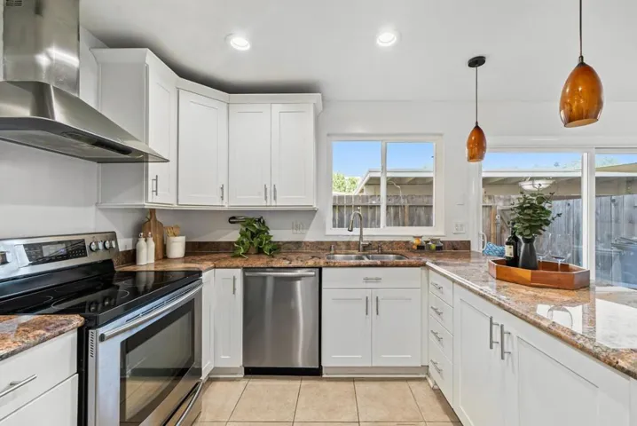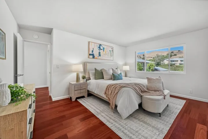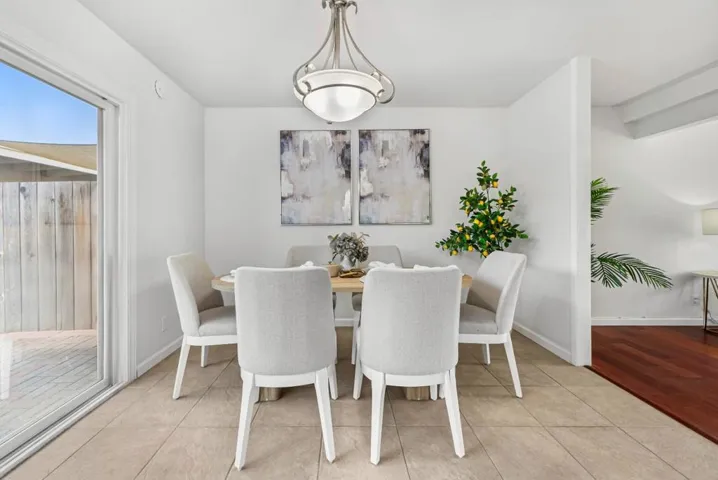 Welcome to this beautifully updated 2-story townhome in the sought-after Berryessa neighborhood, featuring 4 bedrooms and 2.5 bathrooms. The home greets you with a large front lawn and a spacious living room with engineered wood flooring, flowing seamlessly into the dining area with a pendant light. A sliding door opens to a private patio for indoor-outdoor living. The updated modern kitchen offers granite countertops with a bar illuminated by pendant lights, ample white cabinetry, and stainless steel appliances. Nearby are a half bathroom and a laundry area with washer and dryer. Upstairs, the primary suite includes a large bedroom with two closets and an updated en-suite bathroom with a quartz countertop and stall shower. Three additional bedrooms serve family and guests, along with an updated hallway bathroom featuring a quartz countertop and shower over tub. Highlights include engineered wood flooring throughout and freshly painted interiors. The community offers low HOA fees and access to great schools. Conveniently located near freeways, BART, and VTA Light Rail, with shopping (Great Mall, Target), dining, and groceries (Trader Joes, Costco) close by. Outdoor lovers will enjoy Alum Rock Park nearby. Don’t miss this great opportunity!