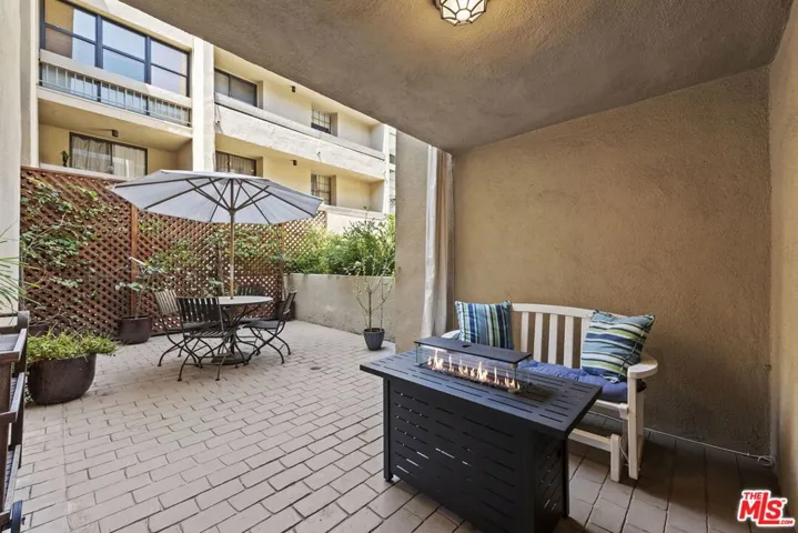 HOA allows for the installation of washer and dryer. This stylish 1 bed, 1 bath condo combines modern upgrades, timeless design, and resort-style amenities in a prime West Hollywood location just steps from Melrose Place. Bathed in natural light, this spacious condo offers over 800 sq. ft. of living space, plus a private 300 sq. ft. patio for outdoor enjoyment. One of only two units in the building with a private courtyard featuring both covered and open-air spaces that rival the feel of a single-family backyard. Interior features include wood flooring, a separate dining and living area with fireplace, stainless steel appliances, and a newly remodeled shower. The spacious bedroom includes a walk-in closet with built-ins and direct access to the private courtyard. Additional highlights include central A/C and heat, an upgraded building access system with touchscreen and phone notifications, and one deeded gated garage parking space. Community amenities elevate the lifestyle: a rooftop deck with panoramic city and hill views, BBQ area, spa, sauna, fitness center, billiards room, secure package lockers, EV/Tesla charging, guest parking, and laundry on every floor. Low HOA dues cover water, trash, gas, and earthquake insurance. Perfectly positioned near Melrose boutiques, Santa Monica Boulevard cafes, Cedars-Sinai, and Beverly Hills, this home offers the best of LA convenience, and a quiet retreat in the heart of it all.