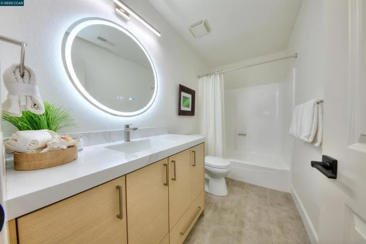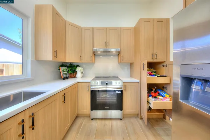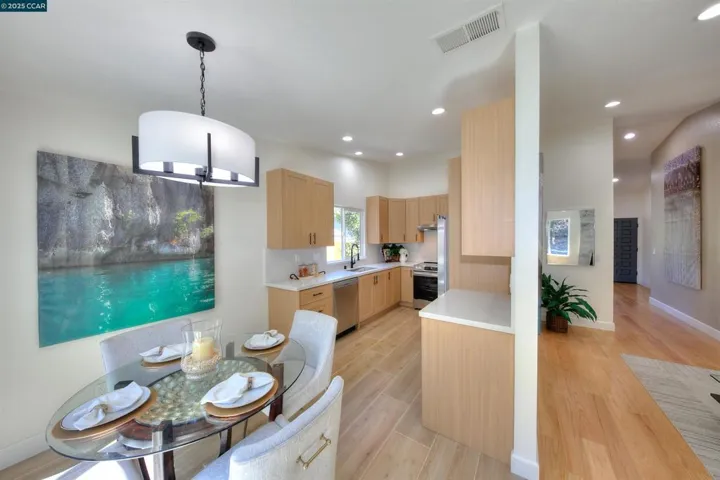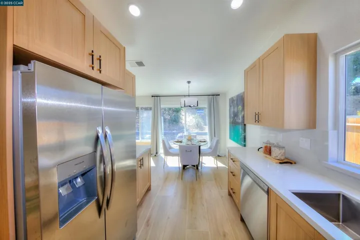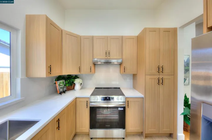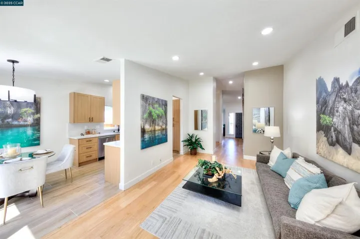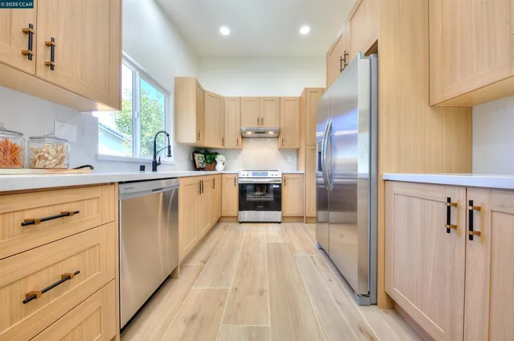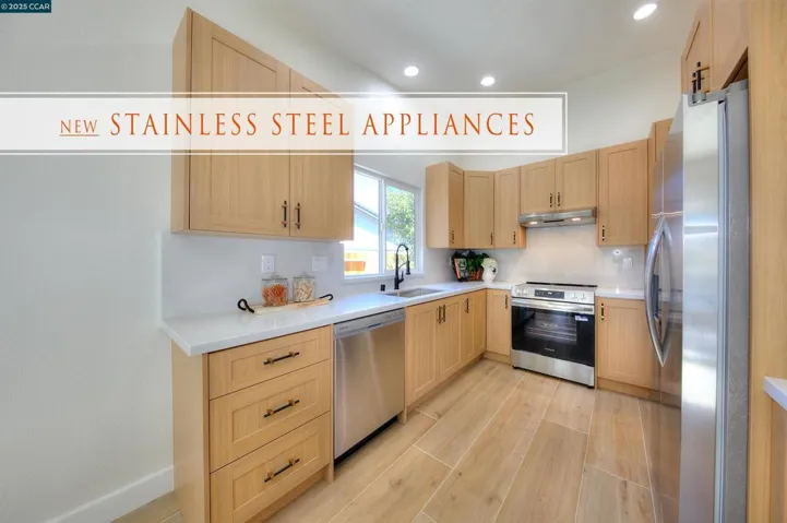 Nestled in the heart of Hercules, this beautifully renovated 3BR, 2BA home offers comfort, style, and convenience. The Family Room showcases a stunning porcelain-slab Fireplace framed by gleaming hardwood floors, all-new Windows, and updated Lighting. The brand-new Kitchen is equipped with custom Euro-Cabinets, Quartz Countertops, a stainless steel single-bowl Sink, and premium Appliances, perfect for everyday living and entertaining. Both Bathrooms have been fully renovated with designer finishes, including Quartz vanities and modern fixtures. The spacious Primary Suite features an updated Bath and walk-in closet, while two additional Bedrooms offer flexibility for guests or a home office. Central A/C provides year-round comfort, and sliding doors open to the Backyard, an inviting space for gardening, BBQs, or relaxing outdoors. Close to schools, shops, and restaurants, the home is part of the vibrant and diverse City of Hercules, “A Place We Call Home.” Nearby are Refugio Valley Park, the Swim & Recreation Center, Dog Park, Teen Center, Public Library. The proposed Intermodal Regional Transit Ctr at the Waterfront THE HUB connects Train, Bus & future Ferry service, adding to the city’s convenience and growth. Move-in ready and beautifully upgraded.
