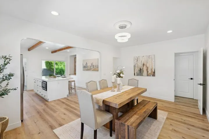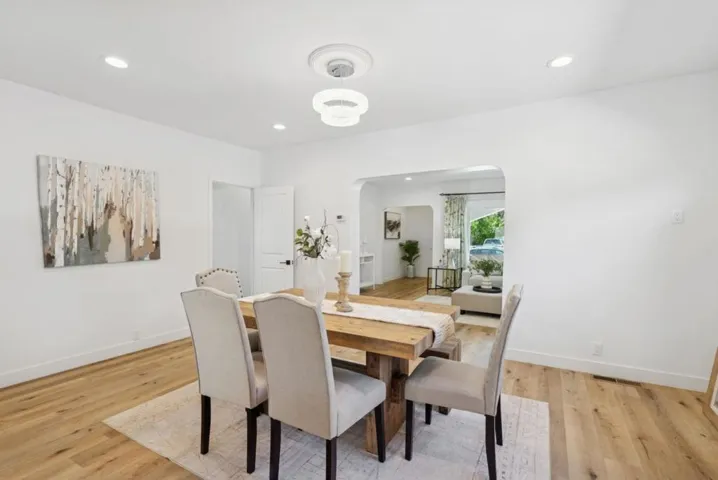 Beautifully remodeled single-story home in the heart of Silicon Valley! This 3-bedroom, 2-bath residence offers an open and inviting floor plan with 1,470 sq ft of stylish living space. The contemporary kitchen features white shaker cabinets, sleek quartz countertops, and stainless steel appliances, perfect for both everyday living and entertaining. Enjoy modern upgrades throughout, including laminate flooring, recessed lighting, central AC and heat, and tastefully updated bathrooms. A separate laundry room with washer and dryer adds convenience, and the bonus basement provides extra storage or creative space. Step outside to a spacious backyard with low-maintenance landscaping, ideal for relaxing or hosting guests. Situated just minutes from Downtown San Jose, SJSU, SAP Center, and major tech employers including the proposed Google campus. This turnkey home is move-in ready and waiting for its next owner!