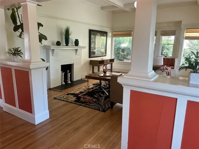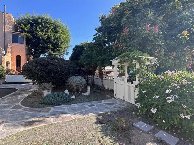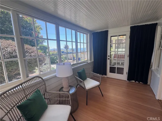 From Carolina you enter through the gated arbor into the garden courtyard that is landscaped with lush plants and natural stone. There are ocean views from the courtyard and from various rooms inside the 3 bed 1.5 bath home. Features include a formal stone entry that flows into a large family room with an abundance of natural light due to the 10’ high coffered ceilings, and large windows that afford views of the ocean. At the front of the house is an enclosed sunroom off the front porch. Other architectural features are French doors, crown-moulding, original doors and hardware, a fireplace (mantle facade), and loads of architectural charm take you back in time to 1920 when this house was originally built.