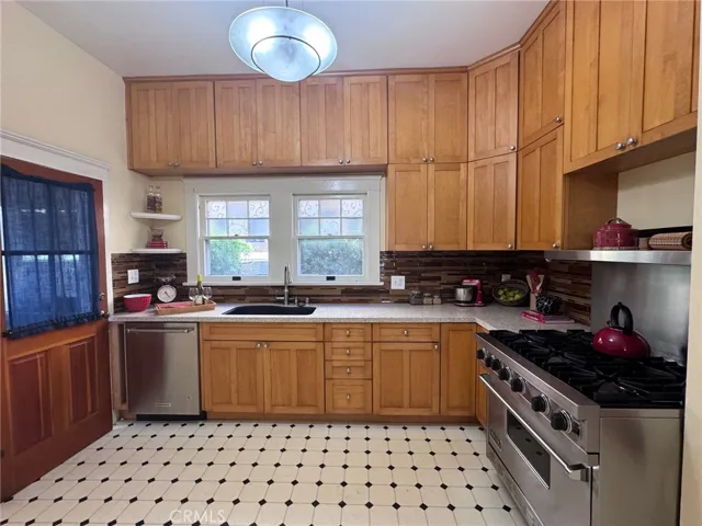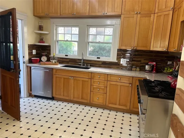 The 3 bedrooms and full bathroom are upstairs, with a small room off of one of the bedrooms with views of the ocean that could be used as a home office. The kitchen features hardwood cabinetry, Caesar Stone counters, a Viking 6-burner range and a laundry room off of the kitchen with access to the back yard. An expansive formal dining room with a built-in hutch is off the main hallway adjacent to the kitchen. The interior of the house has been updated over the years while preserving its historic character and exterior curb appeal. A fully remodeled bathroom with a classic hexagon floor tile, porcelain tiled walls, a claw-foot tub, and copper plumbing. There is forced air heating, upgraded electrical breakers, tankless water heater and a pitched roof.