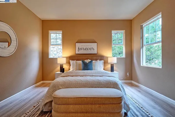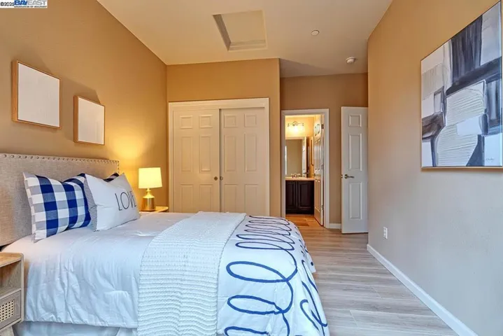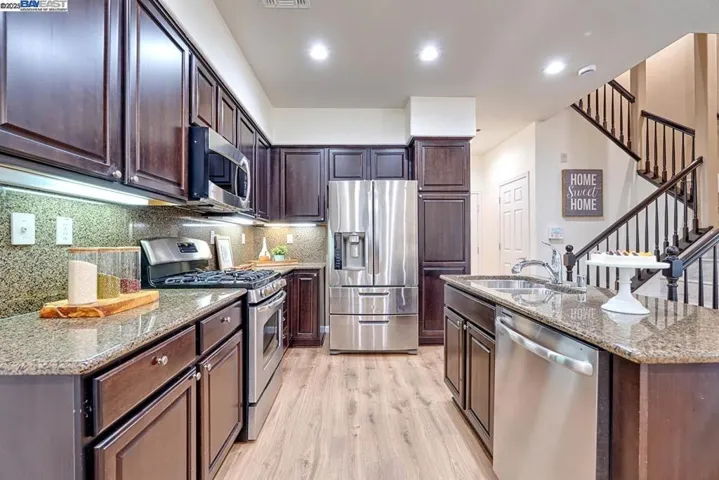 Charming and elegant tri-level townhome located in the premier Ardenwood neighborhood, featuring top-ranked schools! This desirable end-unit home offers abundant natural light and an open, spacious layout. The modern kitchen boasts contemporary cabinetry, granite countertops, a gas range, stainless steel appliances, and an island with a sink—perfect for everyday living and entertaining. The expansive primary suite includes a walk-in closet and dual sinks for added convenience. Each of the three bedrooms comes with its own en-suite bathroom, providing privacy and comfort for the whole family. Additional highlights include: Newer laminate flooring throughout, Recessed lighting, double-pane windows, In-unit laundry, Central heating & A/C. Spacious patio + 2-car side-by-side garage. Located just steps from Google and Facebook shuttle stops, this home is also close to shopping, grocery stores, and restaurants. Enjoy nearby amenities like Karl Nordvik Sports Park, Alameda Creek Trail, Coyote Hills Regional Park, the historic Ardenwood Farm, and more. Excellent commuter location with easy access to the Dumbarton Bridge, Highways 84/880 & the BART station. Convenient to Meta, Tesla, and other major employers. A must-see home in an unbeatable location! 360VT: https://tinyurl.com/23ytkcrt