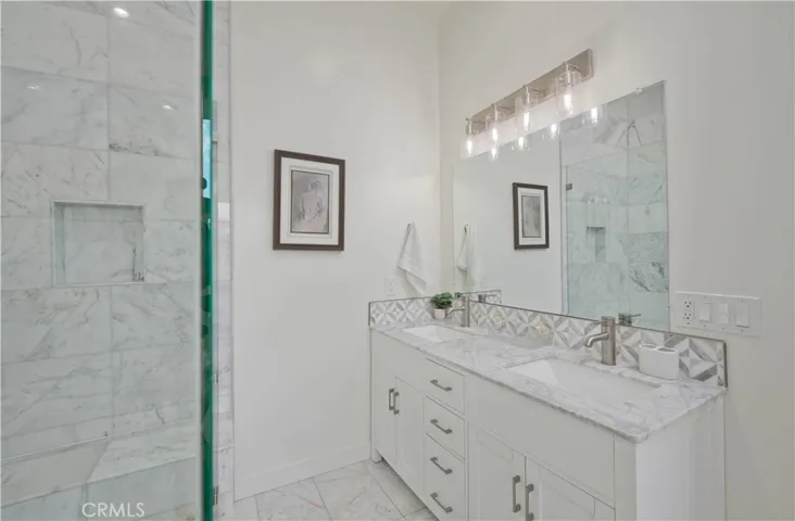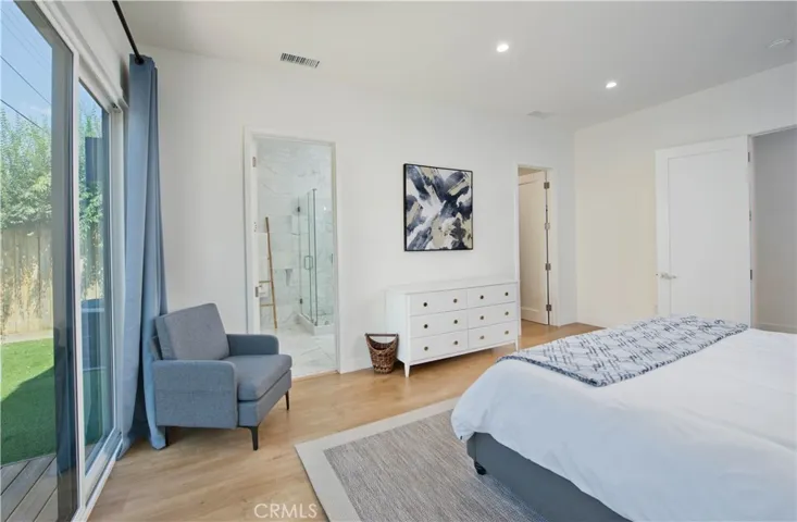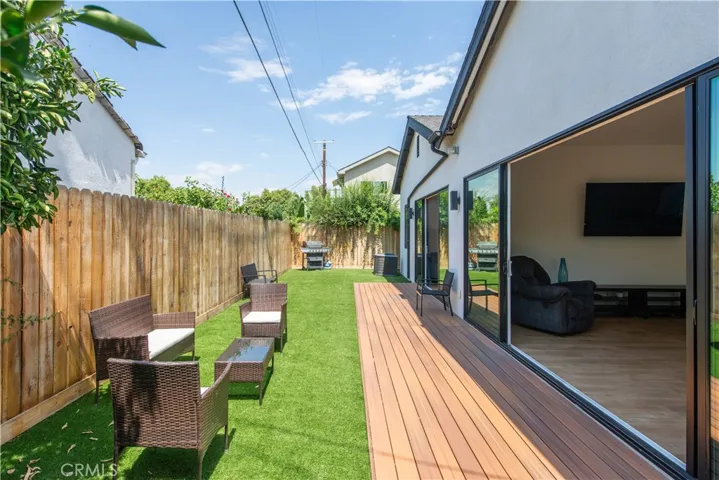 Stunning Remodeled Encino Park Home with Modern Upgrades and Energy Efficiency. Welcome to this beautifully remodeled and expanded 5-bedroom Encino Park gem, offering a seamless open floor plan flooded with natural light and highlighted by a striking exposed wood beam ceiling. From the moment you enter, you’ll be captivated by the expansive great room featuring wall-to-wall glass doors that open to a serene outdoor space. The chef’s kitchen is a showstopper — designed with quartz countertops, a spacious eat-in island with ample storage, soft-close white cabinetry, premium Thor stainless steel appliances, and a massive walk-in pantry for ultimate convenience. This home includes three generously sized bedrooms near the front of the house, accompanied by a large shared bathroom with double vanity. The luxurious primary suite is a private retreat with a walk-in closet, spa-like bathroom featuring an oversized shower, soaking tub, and dual sinks. An additional en-suite bedroom with its own walk-in closet and full bath adds flexibility for guests or extended family. Step outside to your private backyard oasis, complete with low-maintenance turf, a durable Trex deck perfect for entertaining, and lush landscaping. Enjoy energy efficiency year-round with fully owned solar panels and Tesla Powerwall batteries, keeping your electric bills low and your home powered even during outages. This move-in ready home blends comfort, luxury, and sustainability — don’t miss this rare opportunity in Encino Park!