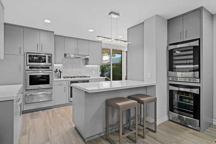 This charming home is move-in ready so pack your bags and enjoy all that the desert has to offer! Remodeled tastefully and immaculately kept, you won’t want to miss this opportunity!This property features large format tile flooring in the living areas, updated carpet in the bedrooms and shutters throughout. The kitchen is light and bright with a cheery feel overlooking the pool and patio. The primary bedroom features a new walk in custom closet, while the primary bath has a large walk in shower and quartz countertops. A four hole putting green off of the 2nd and 3rd bedrooms is a fun way to keep yourself entertained when not on the golf course. The wrap around patio overlooks an expansive greenbelt for peaceful and serene relaxation or dining. Leased solar, newer windows and doors makes this home highly energy efficient. Situated in the heart of Rancho Mirage, The Springs offers you a very active lifestyle of golf, tennis or pickle ball. The beautifully remodeled clubhouse plays host to numerous social events throughout the year. Make your appointment today! The Springs is where you belong!