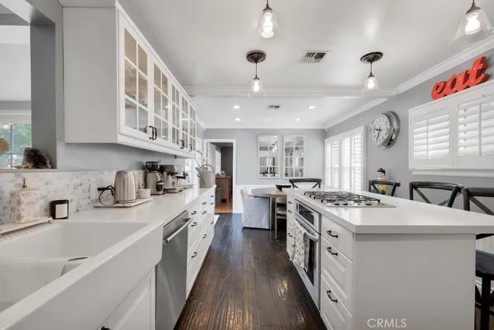 This is the home you have been waiting for! South of the Blvd. charmer that instantly makes you feel welcome and comfortable. Welcome to 22051 Avenue San Luis, a delightful residence that perfectly blends classic charm with modern upgrades. Exterior of home was just painted 10/25. This beautiful home features an inviting atmosphere and a host of appealing details that will capture your heart. Behind the white picket fence and rose bushes lies an adorable 3 bedroom, 2 bath home with the perfect blend of original touches & modern comforts. Step inside to discover an open-concept living space bathed in natural light, showcasing warm hardwood floors and rustic charm throughout. The heart of this home is undoubtedly the stunning kitchen, recently remodeled to perfection. It boasts sleek quartz countertops, stainless steel appliances, a great island, farmhouse sink and custom cabinetry that provides both style and functionality. Whether you’re a culinary enthusiast or simply enjoy entertaining, this kitchen is sure to impress! The spacious layout offers ample room for relaxation and gatherings, with a cozy dining area that flows effortlessly from the kitchen. The charming features extend beyond the kitchen, with thoughtfully designed living spaces that create a warm and welcoming ambiance. Upgrades include, crown moldings, recessed lights, wood shutters and designer paint choices throughout. Off the family room is a large patio that overlooks the private yard that is perfect for outdoor entertaining or simply enjoying the serene surroundings. There are also multiple storage sheds and a great mancave/office. Located in a sought-after neighborhood, this home is conveniently situated near local amenities, parks, and schools. Don’t miss your chance to make this charming property your own! Schedule a showing today and experience the perfect blend of character and modern living at 22051 Avenue San Luis.
