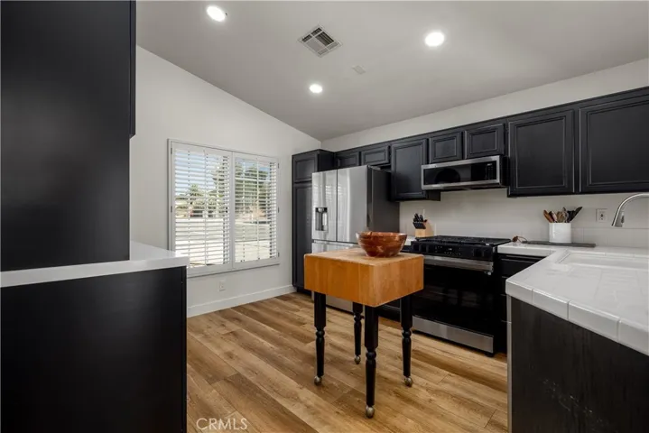 ***LOW TAXES, NO HOA***Nestled on a flat corner lot, this beautiful single-story 3-bed, 2-bath home offers comfortable California living. Inside, enjoy a bright dining room and living room with plantation shutters and a welcoming fireplace. Designer flooring throughout the whole house. The kitchen features a beautiful custom floor to ceiling cabinet perfect for your coffee bar and storage. Kitchen also offers updated appliances, stove, dishwasher, and microwave. Updated vanities and custom mirrors in both bathrooms as well newer toilets and light fixtures. While the garage includes built-in shelving and attic access for extra storage. Step outside to a generous backyard with a slate-tiled patio and built-in BBQ—perfect for summer gatherings. With low property taxes, no HOA, and close proximity to parks, schools, and shopping, this home blends affordability, convenience, and character seamlessly.