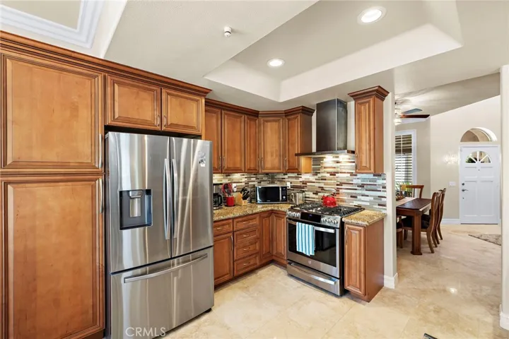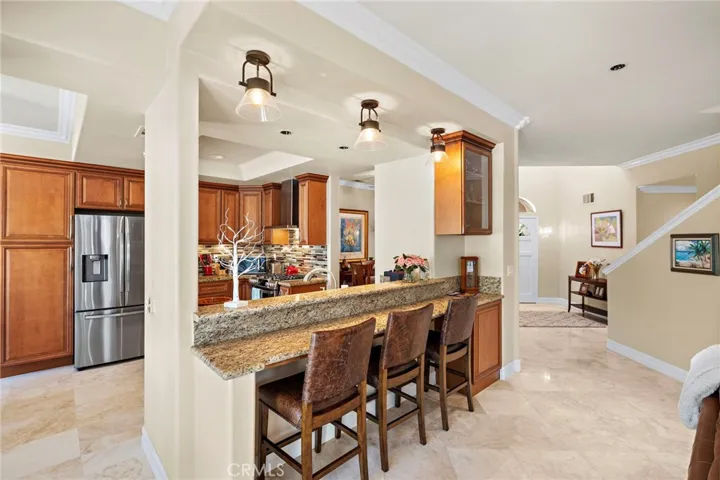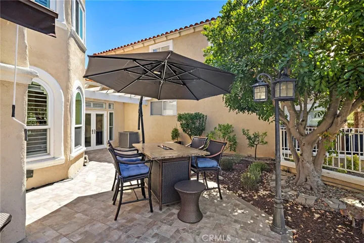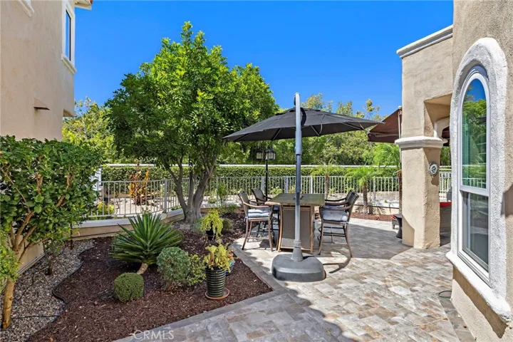 MAIN FLOOR MASTER: Welcome to 15 Via Barcaza, an elegantly upgraded residence in the highly desirable Los Verdes enclave of Coto de Caza. This beautifully maintained home offers 3 bedrooms, 2.5 bathrooms, and 2,102 square feet of thoughtfully designed living space. The main level features a luxurious primary suite with a spa-inspired bathroom showcasing a soaking tub, walk-in shower, and dual vanities. A unique no-step-down open floor plan seamlessly connects the family room, dining area, and upgraded kitchen, creating the perfect space for gatherings. The kitchen is enhanced with granite countertops, stainless steel appliances, bar seating, and a charming breakfast nook. High ceilings, skylights, and newer Milgard high-efficiency windows (with transferable warranty) flood the home with natural light. Upgrades include travertine tile flooring, crown molding, plantation shutters, French doors with mini blinds, and upgraded baseboards throughout. A cozy fireplace adds warmth to the inviting family room, while an awning off the patio keeps the home bright yet comfortable year-round. The backyard is a true highlight—featuring a newly remodeled patio, ample space for entertaining, a fenced-in area for pets, and room for grilling or gardening. Upstairs, two spacious secondary bedrooms share a remodeled bathroom and open to a balcony with hillside and sunset views. Practical updates add peace of mind, including a newer water heater (with warranty), newer PEX repipe (with warranty), and an attached two-car garage with built-in storage and laundry area. Set in the guard-gated community of Coto de Caza, this home offers both privacy and convenience. Residents enjoy access to miles of trails, parks, and the nearby Coto de Caza Golf & Racquet Club, featuring two Robert Trent Jones Jr. championship courses. Exclusive membership opportunities are available for golf, pickleball & tennis, fitness, swimming, and social amenities, offering a true resort-style living experience. 15 Via Barcaza is more than a home —it’s a lifestyle of comfort, elegance, and endless opportunity for entertaining and relaxation.