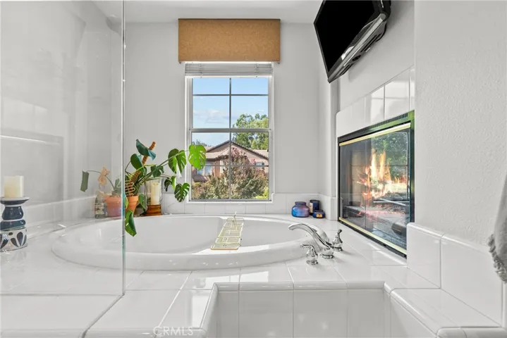 Located on a picturesque tree-lined street in the sought-after Avignon community of Valencia, this charming French-inspired gated neighborhood is one of Santa Clarita’s best-kept secrets. Step onto the inviting front porch before entering this spacious 3-bedroom, 2.5-bath townhouse with over 1,900 sq. ft. of living space and direct-access 2-car garage. The home has been beautifully updated with new deluxe laminate wood-style flooring, new plush carpet, vaulted ceilings, recessed lighting, upgraded fixtures, and ceiling fans in all bedrooms. Cozy up by one of the two fireplaces with custom stonework, or enjoy the convenience of an indoor laundry room. The chef’s kitchen is equipped with quartz countertops, stainless steel appliances, upgraded plumbing fixtures, and abundant cabinetry. The backyard is a private retreat featuring new synthetic grass, rose bushes, and professionally designed landscaping. Upstairs, you’ll find a rare oversized secondary bedroom with a full en-suite bath with quartz countertops—essentially a second primary suite. The luxurious primary suite boasts two-tone paint, a two-sided fireplace, window seat, automated blinds, and dual walk-in closets. The spa-inspired bathroom offers a large soaking tub with fireplace and TV, dual vanities, and a separate shower. The Avignon community provides resort-style amenities including a pool, spa, charming courtyards, and plenty of guest parking. Conveniently located near award-winning schools, fine dining, shopping, golf, entertainment, and with easy freeway access, this property truly has it all.