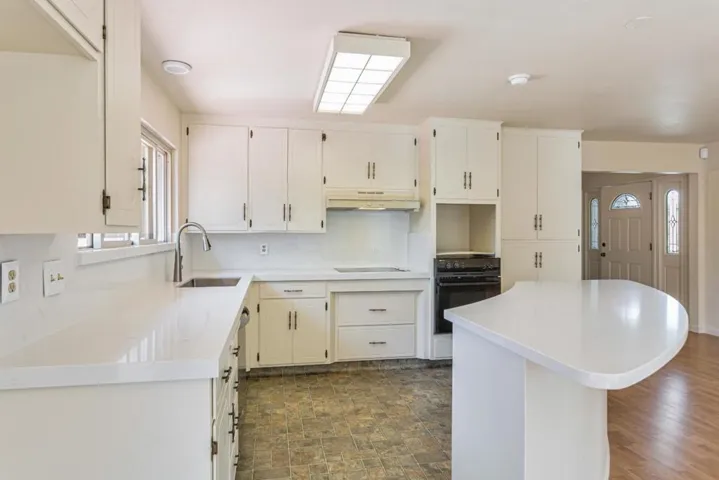 Welcome to this charming 3-bedroom, 2-bathroom home located in the Los Olivos/Riker neighborhood in South Salinas. First time on the market in 50 years! With 1,708 square feet of living space, this home offers a functional layout perfect for modern living. The kitchen is a standout feature, boasting quartz countertops, a convenient island, and a built-in oven range, making it an ideal space for culinary enthusiasts. The home features a variety of flooring, including new carpet in two of the bedrooms, hardwood, and vinyl/linoleum. The family room, combined with the kitchen, creates a welcoming environment for gatherings and relaxation. Stay cozy on cooler nights by the fireplace, a pleasant addition to the living area. For your convenience, the laundry area is located in the garage, which also offers two parking spaces, and a brand new water heater. The interior and garage has been completely painted. Enjoy the blend of comfort and practicality in this well-appointed South Salinas home.