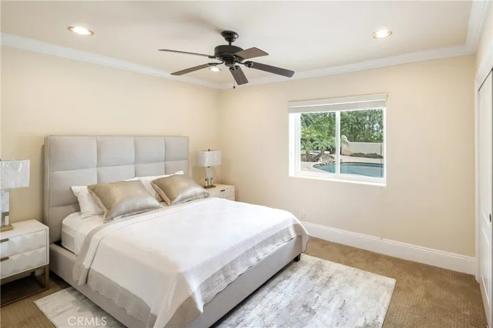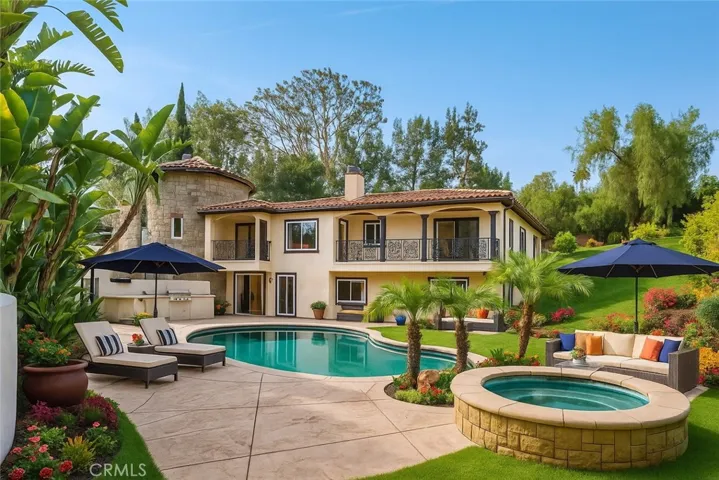 Resort-style outdoor living awaits with a sparkling pool & spa, Viking BBQ, fire pit, and expansive entertainer’s patio. A rare 6-car tandem garage ensures ample parking, while lush landscaping and long private driveway offer seclusion.