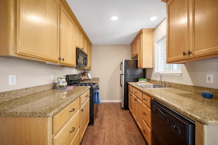 Super sweet property ready for new owners! Welcome to a delightful home located in the vibrant city of Morgan Hill. This residence offers 3 bedrooms with convenient walk-in closet. The kitchen is equipped with a gas cooktop, granite countertops, and a refrigerator, making it ideal for culinary enthusiasts and eat-in dining area. The family room provides a cozy space to relax. Flooring throughout the home includes a mix of carpet and engineered laminate, providing comfort and style. For practicality, the laundry area is located inside the house, ensuring ease and convenience. Energy-efficient double-pane windows contribute to a quiet and comfortable living environment. Additional features include ceiling fans for cooling. Private patio for relaxing off the kitchen sliding door and if more space is desired, open the back gate to common green space! Situated within the Morgan Hill Unified School District, walking distance or short drive to the delicious Lawson’s Bakery & more! Don’t miss this super sweet place in Morgan Hill to call home!
