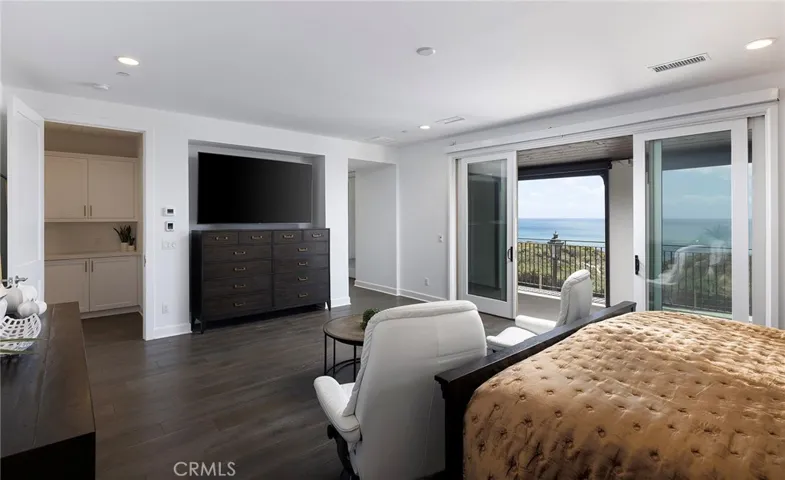 From the historic San Clemente Pier to Dana Point’s sculpted Headlands and the distant silhouettes of Catalina Island, sweeping panoramic views of the Pacific form the ever-changing backdrop to this custom-caliber residence—an elevated offering within the Azure Viewpoint Collection at Sea Summit in San Clemente. Ideally positioned on a single-loaded cul-de-sac framed by protected coastal bluffs, canyon trails, and the raw beauty of preserved open space, the Mediterranean-inspired home welcomes with a covered front patio and fireplace, extending into a sun-drenched ocean-view terrace wrapped in curated hardscaping and lush landscape design. Inside, an expanded floorplan of approximately 4,880 square feet unfolds with quiet grandeur—offering four ensuite bedrooms and four-and-one-half baths, including a refined main-level suite. Soaring ceilings, wide passages, and disappearing walls of glass create a seamless dialogue between indoors and out, with custom built-ins framing the great room’s fireplace and carrying into a dining room that connects effortlessly to both the backyard and an exquisitely appointed kitchen. The kitchen itself is magazine-worthy: a generous quartz island with seating for six, white Shaker cabinetry, artisan tilework, dual pantries—including a walk-in with integrated beverage station—and professional-grade appliances by Sub-Zero, Wolf, and Asko. A dramatic staircase, anchored by a custom desk niche, leads to a sunlit landing, versatile bonus room, and a serene primary suite where a covered balcony captures the horizon. The suite offers a retreat-like sitting area, boutique walk-in closet with direct laundry access, and a spa-like bath with freestanding tub, dual-entry shower, and uninterrupted views of whitewater and sky. Outside, a private loggia, cascading spa, open-air fireplace, and built-in BBQ kitchen complete the home’s outdoor experience—crafted for unforgettable entertaining. Built by acclaimed luxury builder Taylor Morrison, this residence enjoys access to the exclusive Summit Club, a 21,000-square-foot coastal haven with ocean-view pool, spa, fitness center, and entertaining lounge. The Sea Summit lifestyle also includes award-winning schools, access to trails and beaches, and proximity to the shops and dining of the Outlets at San Clemente.