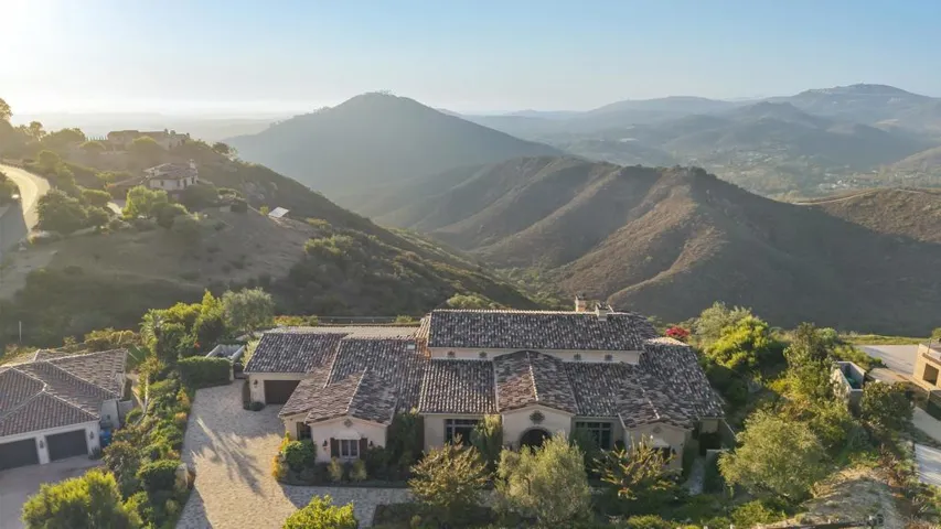 Intentional Living & Artfully Designed Mediterranean Estate! Seller will entertain offers between $3,950,000 to $4,150,000. Experience sophistication and modern elegance in this nearly new (2017) single-level custom estate within the prestigious guard-gated community of Cielo, Rancho Santa Fe. Perched at one of the highest points along the San Diego coast, this home offers panoramic mountain-to-ocean views and exceptional privacy. Featuring 4 bedrooms, 4 full and 2 half baths, plus an executive office/media room, this open-concept design showcases a spacious great room with disappearing glass doors, exposed antique beams, a stunning fireplace, and an entertainer’s wet bar with walk-in wine cellar. The chef’s kitchen boasts quartz countertops, a grand center island, walk-in pantry, and top-tier appliances. The primary suite is a serene retreat with patio access, a spa-style bath with soaking tub, dual vanities, and a boutique-style walk-in closet. The resort-inspired outdoor space features a custom pool and spa, fireplace lounge with TV, and a fully equipped outdoor kitchen with Lynx BBQ and granite bar seating—ideal for al fresco dining and sunset gatherings. Sustainably designed, the home runs on 100% solar power and features drought-conscious landscaping. Additional highlights include a 3-car garage with mahogany doors and a finished loft/attic. Enjoy Cielo’s luxury amenities—clubhouse, gym, pools, tennis, pickleball, playgrounds, and more—all within the acclaimed Rancho Santa Fe School District (Roger Rowe). This single-level estate boasts a modern architectural design with four bedrooms, four full baths, and two half baths. The executive office/media room invites productivity, while the expansive great room, with its seamless indoor-outdoor flow through disappearing glass doors, becomes the heart of gatherings. The artfully curated kitchen is a culinary dream, showcasing quartz countertops, a grand center island, a spacious walk-in pantry, and top-tier commercial-grade appliances, making it a perfect blend of style and functionality. Exposed antique beams and a stunning fireplace create an inviting atmosphere, complemented by an entertainer’s wet bar and a walk-in wine cellar, perfect for hosting intimate gatherings and unforgettable evenings. Retreat to the primary suite—a personal haven featuring direct patio access, a spa-inspired bath complete with an oversized soaking tub, dual vanities, and a boutique-style walk-in closet with custom built-ins. This sanctuary embodies tranquility and luxury. The true crown jewel of this estate is its outdoor oasis with its custom pool and spa that seemingly flow into the horizon, surrounded by a cozy, fireplace-warmed lounge equipped with a flat-screen TV. Beautiful landscaping, hardspacing and fully equipped outdoor kitchen, featuring a Lynx BBQ and granite bar seating for six, create an idyllic setting for al fresco dining, relaxing evenings or entertaining against the backdrop of stunning ocean and mountain vistas. Emphasizing both sophistication and sustainability, this home operates on 100% solar power and features drought-conscious landscaping, ensuring that luxury and efficiency go hand in hand. The property also features a 3-CAR garage with mahogany garage doors and fully finished versatile loft / attic. Every moment spent here is a step into a spa-like retreat, capturing the essence of the ultimate California lifestyle with views to Catalina Island on a clear day. Cielo in Rancho Santa Fe offers a vibrant, luxury lifestyle. Enjoy a full calendar of social activities – plus exceptional amenities including a community center, gym, clubhouse, tennis and pickleball courts, playgrounds, multiple pools, and courts for basketball and volleyball, all included with the HOA. This property is located in Rancho Santa Fe School District – Roger Rowe