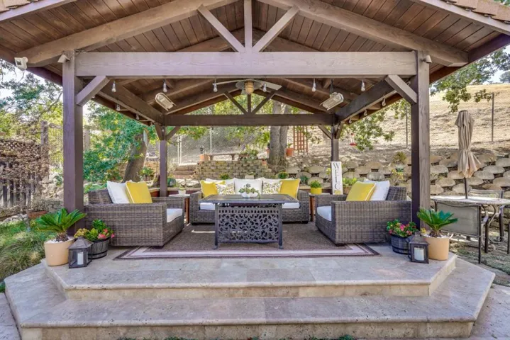 One of the LARGEST HOMES in the neighborhood along the Santa Teresa Hills! Nestled on a quiet cul-de-sac with no rear neighbors & NOT in a high fire OR flood hazard zone. Remodeled in 2004, and again in 2021, this expansive CUSTOM HOME spans 3,007-permitted-sq ft on a large lot with unobstructed foothill views! The stunning gourmet kitchen is a dream w/an 8 ft island, granite countertops, garden window, custom cabinets, breakfast nook, & GE Monogram SS appliances: GAS dbl oven range w/ grill+griddle, lg fridge, micro, d/w, warming drwr, trash cmpctr. Gleaming hardwood flrs adorn the foyer, kitchen, & formal dining rm w/a brilliant Swarovski crystal chandelier. The spa-like primary suite has 2 walk-in closets & a private balcony. Living Rm w/vaulted ceilings; Family Rm w/cozy gas F/P; Office space; Laundry rm; Mudroom; Sunroom w/2 bars & fridge; DUAL-ZONE Cntrl A/C & Heat; Dbl-Pane Windows; Recessed Lights & Ceiling Fans. The beautifully landscaped yard is an OASIS: Travertine tile patio & custom-built pergola w/heaters, lights & ceiling fan; custom built-in BBQ w/bar seating; upper garden on terraced hillside; private courtyard; two storage sheds; lawn; fruit trees & drought tolerant plants. GREAT schools, easy commutes, close to shopping, parks, hiking trails, hospitals & more!
