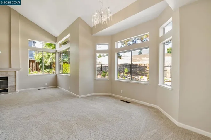 Welcome to 1816 Eagle Peak Avenue, a stunning contemporary residence nestled in the charming city of Clayton, CA. This move-in ready home offers 1,877 square feet of well-designed living space. Step inside to discover the grandeur of cathedral ceilings and elegant panel windows that fill the interiors with natural light. The home features three spacious bedrooms and two and a half bathrooms, with all interior walls, woodwork, and cabinetry freshly painted, complemented by new carpeting throughout.The living room, equipped with built-ins, offers a cozy setting with a marble fireplace, perfect for quiet evenings. The kitchen boasts granite countertops and newer appliances, setting a modern tone for culinary adventures. Enjoy the comfort of new central AC and a new furnace. The attached garage adds convenience, while the fully landscaped front and backyard, equipped with a new automatic drip watering system, ensure ease of maintenance.The property, set against the backdrop of a golf course, offers a private backyard oasis complete with a relaxing water feature, flower beds and raised garden beds. This home is the perfect blend of elegance and practicality, inviting you to experience refined living. A perfect sanctuary to call your own!