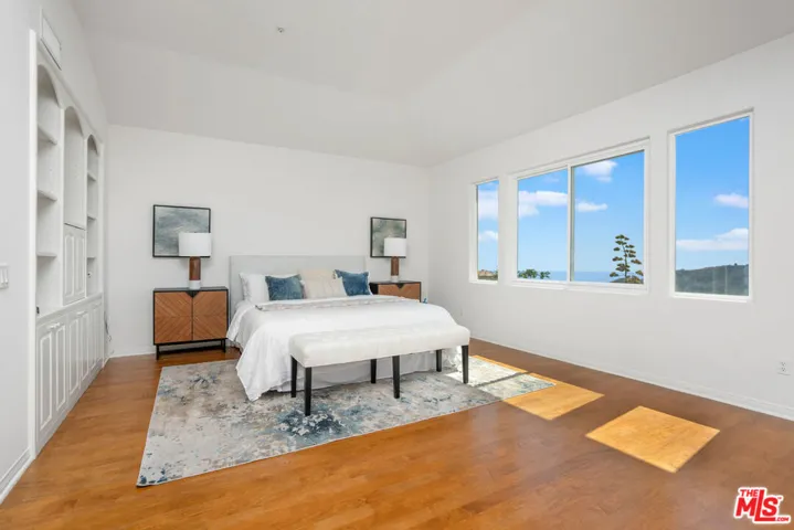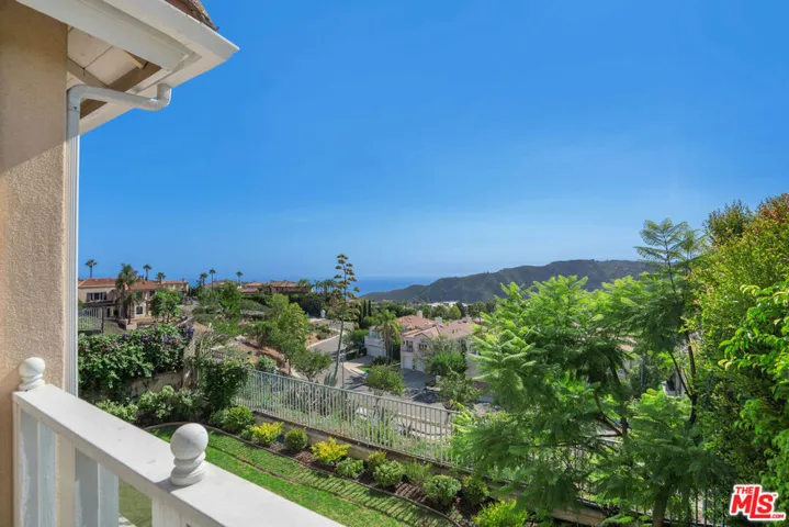 Perched in the exclusive Summit Club of the Palisades Highlands, this immaculate Mediterranean estate offers the best of coastal California living. With 4 bedrooms, 3 baths, and 2,781 sq ft on a nearly 11,000 sq ft lot, the home captures sweeping ocean and Santa Monica Mountain views from nearly every room. A dramatic two-story entry with soaring ceilings, hardwood and stone floors, and elegant French doors welcome you into light-filled living and dining spaces. The gourmet kitchen features a center island, breakfast area, and premium GE Monogram refrigerator, GE Profile double ovens, Miele dishwasher, and gas cooktop with downdraft, opening seamlessly to the family room with fireplace and the private, rose-lined patio and grassy lawn perfect for entertaining against spectacular sunsets. Upstairs, the romantic primary suite delights with a sitting area, fireplace, cedar-lined walk-in closet, spa bath with soaking jacuzzi tub, dual vanities, and a private view balcony. Three additional bedrooms offer flexibility for family, guests, or office space. A three-car garage, inside laundry, and membership in the Summit Club with resort-style pool, spa, tennis, basketball, gym, clubhouse, and exclusive private dog park complete this rare offering. Minutes to Palisades Village, Sunset Boulevard, and Will Rogers State Beach, this timeless retreat blends serenity, elegance, and the ultimate Highlands lifestyle.