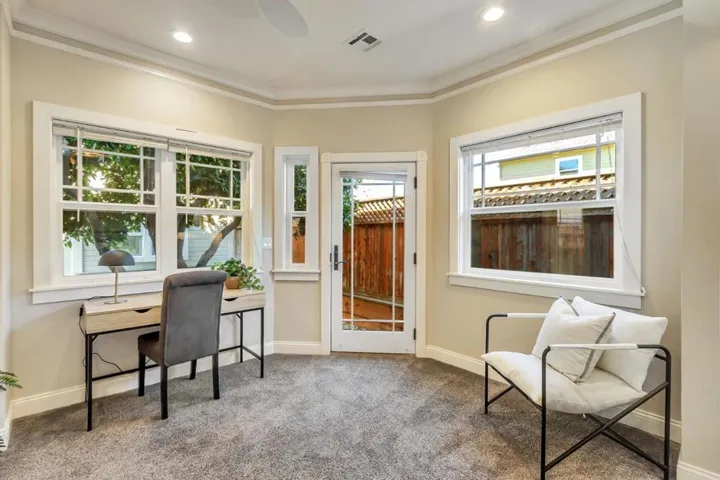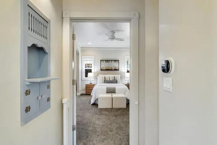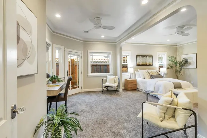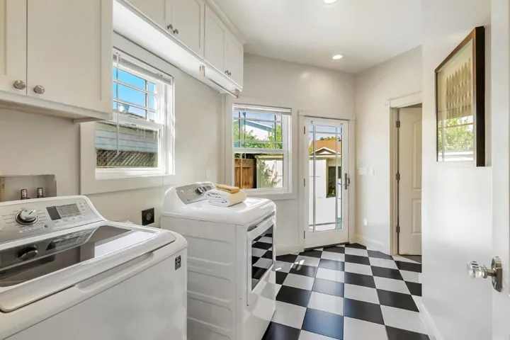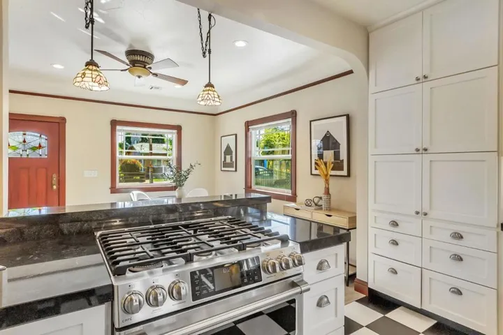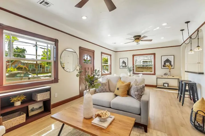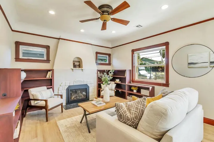 Better than a new home! Beautifully rebuilt in 2018, this wonderful home blends timeless charm with modern amenities. Features include coved ceilings, picture molding, a fireplace with high-efficiency insert, and a gorgeous open kitchen with abundant cabinetry and top-of-the-line appliances. The second bedroom was opened to the primary to create a spacious suite offering a sitting area, dual vanities, spa tub, walk-in shower, and backyard access. Additional highlights of the main home include a large laundry area and second full bathroom. The garage has been converted (unpermitted) to living space with full kitchen, bath with laundry, forced heat & A/C, and finished attic with lift for storage. This home is filled with thoughtful details that must be seen in person to fully appreciate. While the original home was built in 1925, all but the living room fireplace and wall was taken down.