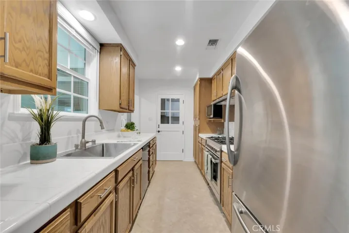 Step onto the wide front porch of this immaculate Burbank charmer and feel instantly at home. Every detail has been thoughtfully cared for in this 3 bedroom, 2 bath residence on a huge lot, featuring gleaming hardwood floors, dual-paned windows, with classic warmth and modern updates. The inviting living room with its fireplace flows to a dining area overlooking the covered patio and expansive, beautifully landscaped backyard—perfect for gatherings. The remodeled ¾ bath offers a large shower, while the full bath retains timeless appeal. A spacious kitchen boasts ample counter space and stainless steel appliances, complemented by a large utility room with extra cabinets for storage or pantry use. One of the bedrooms even features its own fireplace for added charm. Outdoors, enjoy a huge backyard with mature landscaping, two storage sheds, concrete walkways, with room for a pool and even an ADU! A two story 10 foot by 12 foot insulated Tuff Shed in the yard gives you additional storage. With an attached 2-car garage, tankless water heater, newer HVAC system as of August 2024, and upgraded 200 amp electrical panel, copper plumbing, this home is as functional as it is enchanting—a true Burbank gem where every detail shines.