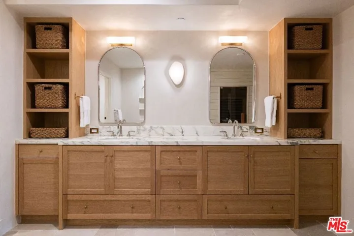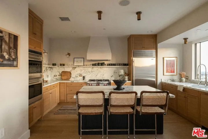 Two distinctive visions come together and create a perfect marriage of textures, colors and materials in this elegantly designed and sensational residence. Units 1901 and 1902 (each remain separate parcels) join together to create a perfect aesthetic harmony in this full-service building on the Wilshire Corridor. Think Kelly Wearstler meets Amber Interiors…traditional yet classic touches such as wainscoting, crown moldings and classic fireplace are juxtaposed with clean lines, simplicity and an eclectic mix of chic modern flair. Enter this voluminous residence with its high ceilings and walls of glass to soak up the enveloping views of the city, ocean, hills and mountains. Unit 1901’s features include; wide plank oak flooring, Calcutta Monet marble in kitchen and primary and marble in secondary bath and powder, TuffSkin protected kitchen, primary, secondary bath and powder, Roman Clay kitchen plaster with rich custom millwork and plaster walls and shower in primary as well as a Sunlighten Amplify sauna. Unit 1902’s features include; honed marble flooring, TuffSkin protected primary and powder, plaster shower, marble in secondary bathroom and powder and Toto toilets (in both units). Fireplace in living room adds a warm feel to this spacious living area. Luxury brand appliances (Wolf, Dacor, subzero…) are used in both the east and west wing kitchens of this stunning apartment and another great feature is two in-unit laundry/utility rooms. These two visions come together and are connected by a whimsical media room complete with cozy bunk beds, wine fridge and built-ins. This one of a kind residence, with two balconies, two elevators direct to the unit overlooking the city, has a uniquely flexible floor plan for all living arrangements. This full service bldg in close proximity to great restaurants, shops, hospitals and UCLA has 24-hour valet, concierge, modern fitness center, pool, with cabanas, media room, conference room, banquet room and more…