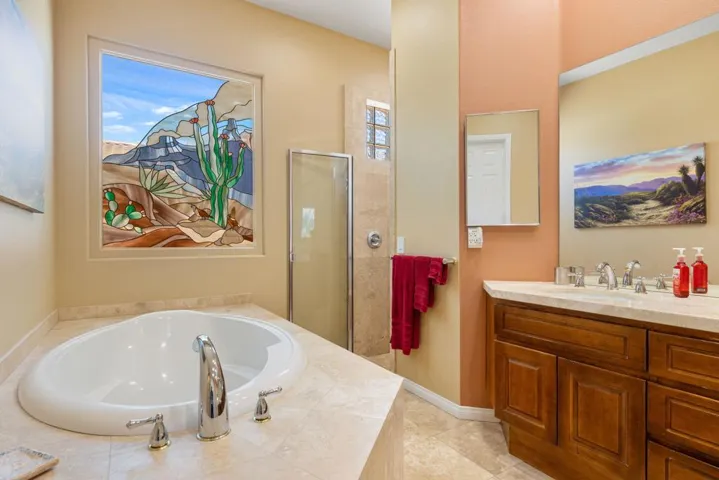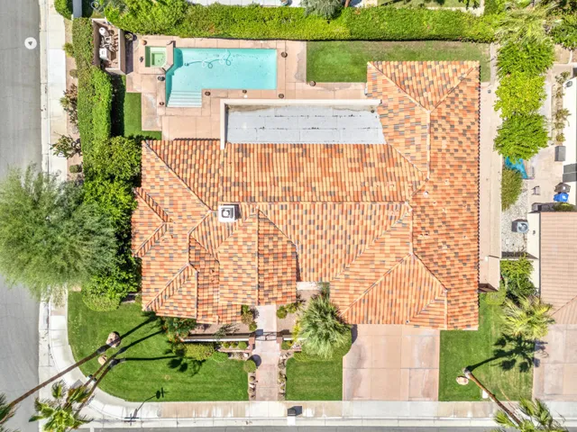 Wonderful South Palm Springs home in the Los Compadres neighborhood of Park Escoba. Beautifully maintained view home with pool and spa plus three car garage. As you enter the double glass entry from the enclosed courtyard, you have full view of living, dining, breakfast and island kitchen areas, all in terrific condition.Two guest bedrooms and two baths on one side of the home, one has access to the rear yard.On the other side of the home is the master bedroom and spa like bath with soaking tub and walk in shower.The island kitchen is a cooks delight with like new, double ovens, gas cooktop, refrigerator, dishwasher and island sink.There is a large laundry room with sink and lots of cabinets.Beautiful landscaped backyard with lawn, citrus trees, plus pool and spa and magnificent views both south and west.This home has been meticulously maintained including all mechanical systems.