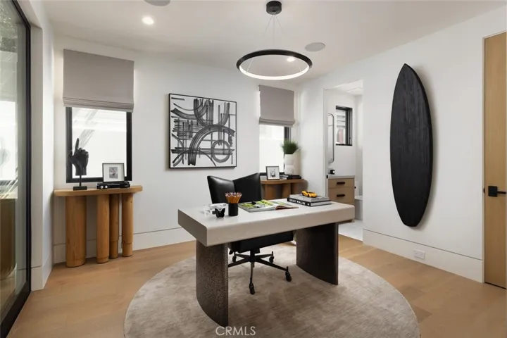 412 Heliotrope is a FULL SINGLE FAMILY HOME ground up new construction built by Grewal Development, and crafted by architect Mark Teale, which was brought to life by the award-winning Sage Design Studio! This 4-bedroom, 6-bathroom residence spans 3,120 square feet of refined interiors, plus 650 square feet of seamless indoor-outdoor living space between the front firepit entry to the interior courtyard that features built-in heaters and a custom waterwall. Inside, European white oak floors run throughout, while sunlit living areas are elevated by rich details—like the Limestone fireplace flanked by custom oak bookshelves with integrated LED lighting. A custom stained Hemlock tongue-and-groove ceiling adds subtle texture and warmth throughout the home, both indoors and out. At the center, a showstopping kitchen with fully equipped top-of-the-line Wolf appliances and a dramatic natural stone island. The primary suite offers a serene haven, with bi-folding doors to a private balcony, a Kelly Wearstler chandelier, and a see-through wall mounted fireplace that opens to a spa-worthy bath wrapped in King White marble. A private elevator connects all three levels, leading to a rooftop retreat with a 750-square-foot rooftop deck with panoramic views, wet bar, hot tub, and fire pit! Every inch of this home is curated—from sleek Caesarstone baths and mosaic tilework, to a laundry room finished in Japanese Yukon tile—bringing thoughtful luxury to coastal living. Minutes away from all of the village shops and restaurants, and a short distance to Corona del Mar State Beach!
