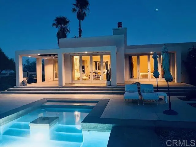 Exceptional Desert Retreat with Custom Architectural Details & Adjacent Lot in Verbena Estates area on 2.21 acres. Private resort-like desert retreat with expansive walled compound is surrounded by beautiful gardens, a perfectly framed view of Indian Head Mountain and Panoramic desert views including gorgeous sunsets over the Santa Rosas. Designed by renowned Laguna Beach Architect this stunning residence showcases custom floor to ceiling windows, doors and skylights that engulf you in the light, peace and beauty of the desert. The open-plan living area with 9 and 10-foot ceilings, ‘Santa Barbara’ finished walls inside and out, extensive recessed lighting-many on dimmers, built-in speakers-ideal for entertaining indoors and out. The bathrooms feature elegant limestone counters, handmade tile showers and tubs, and designer quality fixtures and lighting. Enjoy seamless indoor-outdoor living with expansive concrete patios, a built-in BBQ area, extensive outdoor lighting and the contemporary 16x32ft. pool. All surrounded by professionally designed landscaping and dramatic mountain views. The property includes a two-car garage plus a detached, extra-large garage-perfect for a potential ADU, RV or all your desert toys. On 2+ Acres experience the best of desert living in this superior location just minutes from shops, dining, Borrego Palm Canyon Trail, and endless outdoor adventure. Walk to the historic Palms Hotel for dining, live music and cocktails. Enjoy spectacular wildflower displays in spring and spectacular star gazing at night. This is truly a one-of-a-kind opportunity—schedule your private showing today! -Owned Solar -Revenue potential as a Vacation Rental in a town that supports VRBO’s which is rare! -No HOA’S -New Kohler Toilets, Bosch dishwasher, microwave, cooktop & oven. -Designer walled compound.